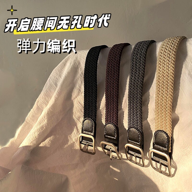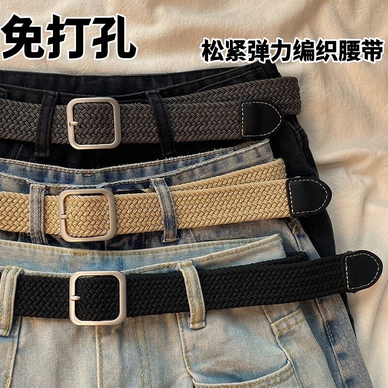 Плетеный эластичный ремень, высокие эластичные джинсы, тканевые штаны