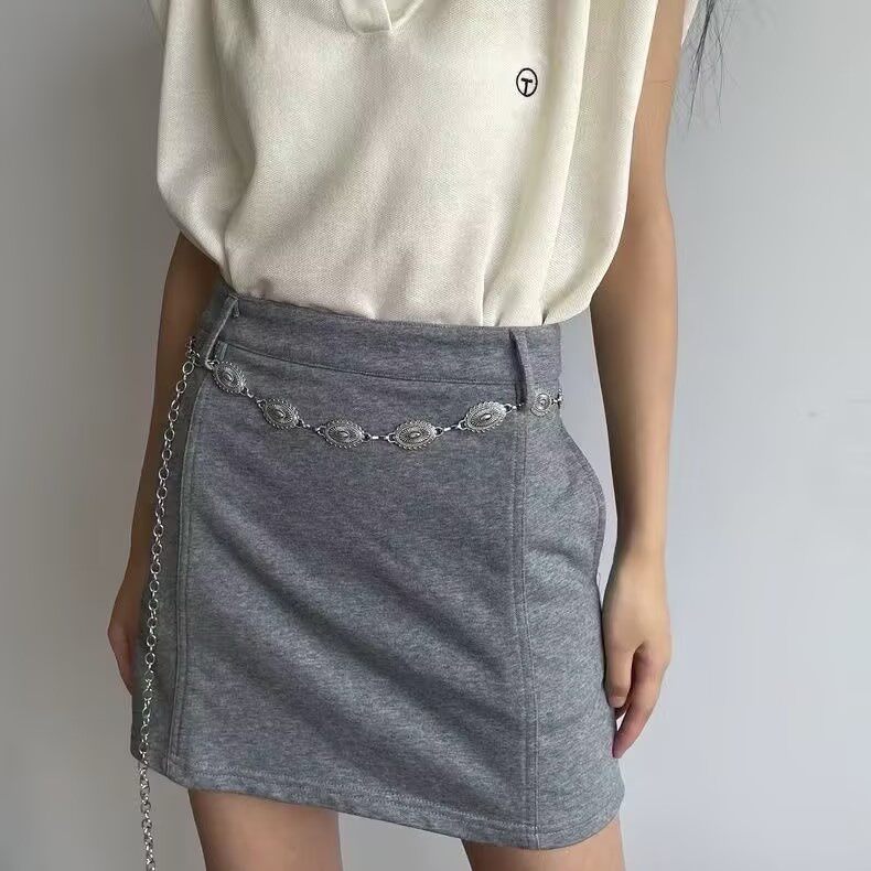 Ретро цепочка, аксессуар, летнее платье, юбка, металлический ремень, серебряный утягивающий пояс на талию, изысканный стиль