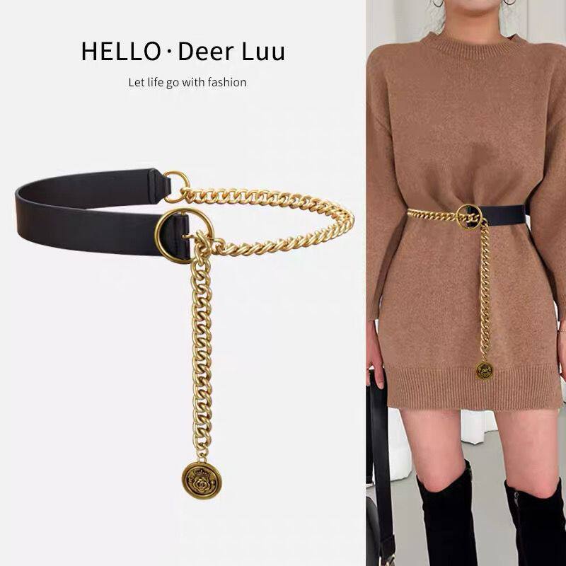 Tide, ремень, цепь, летний костюм, модная универсальная металлическая подходит с юбкой, изысканный стиль