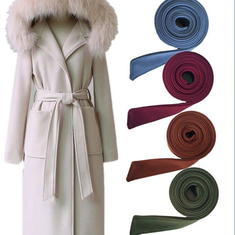 Шерстяное пальто, шерстяной розовый двусторонний кашемировый белый ремень