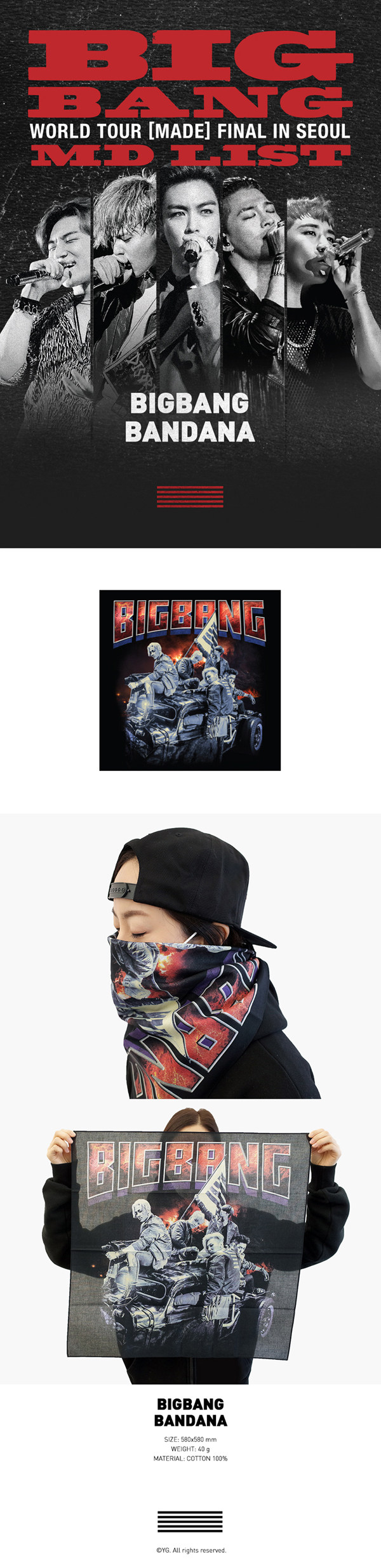 На недавно выпущенном концерте в Сеуле официальный сайт YG приветствует шарфы и платки.