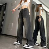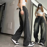 Джинсы, ретро небольшие дизайнерские штаны, градиент, в американском стиле, тренд сезона, свободный прямой крой