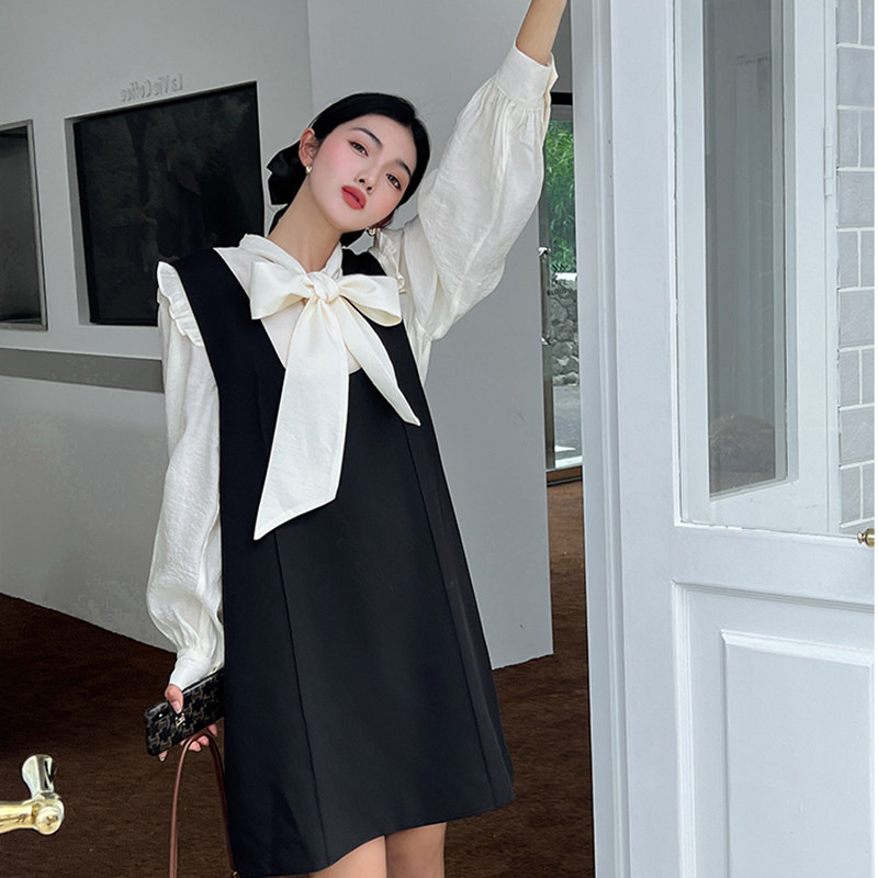 Осенний комплект, рубашка, универсальные подтяжки, платье большого размера с бантиком, коллекция 2023, по фигуре