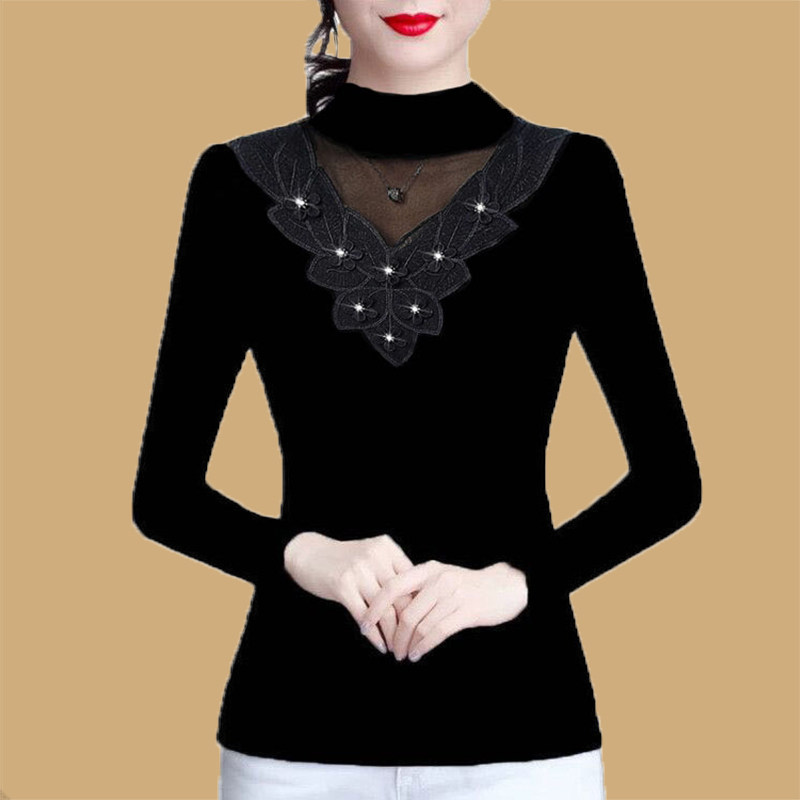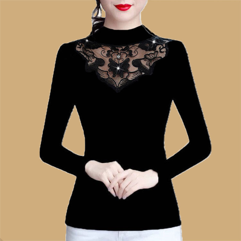 Кружевной шелковый приятный телу демисезонный вместительный и большой утепленный лонгслив, коллекция 2023, размер