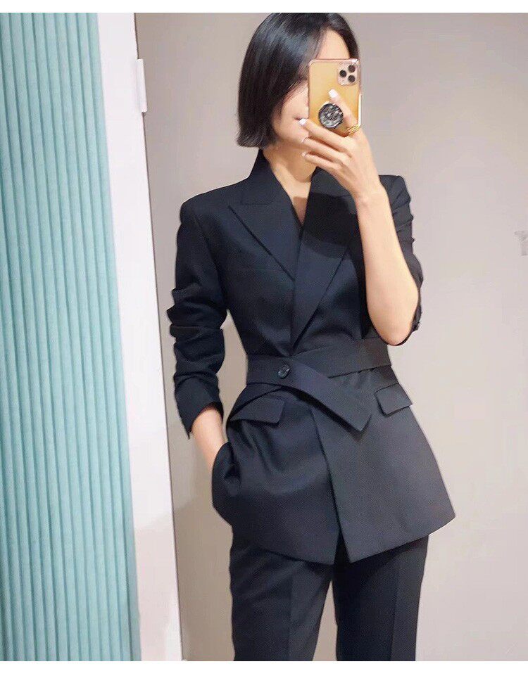 Демисезонный ремень, классический костюм, комплект, пиджак классического кроя, в корейском стиле