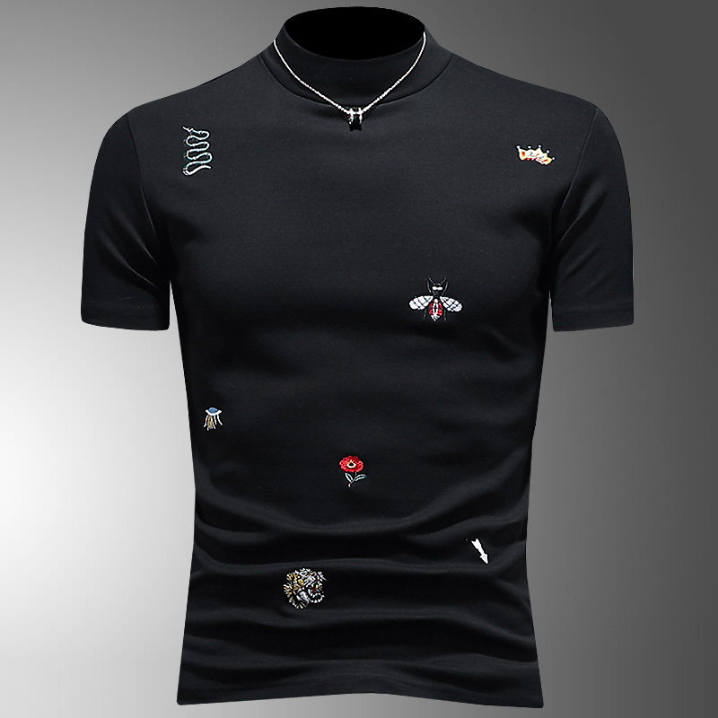 Трендовая утепленная удерживающая тепло футболка с коротким рукавом, с вышивкой, облегающий крой, большой размер