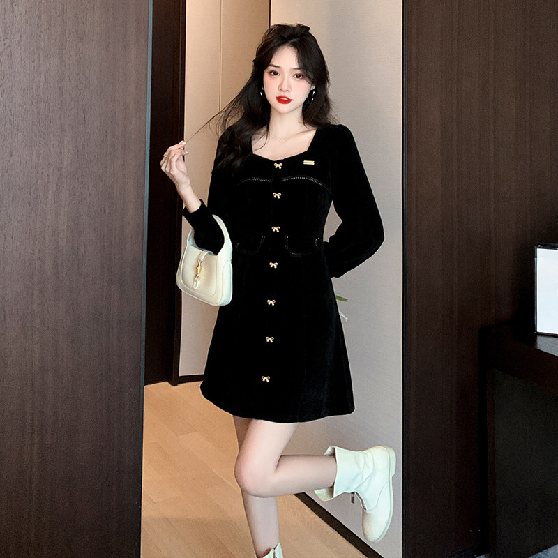 Ретро демисезонная юбка, приталенный лонгслив, корсет, платье, изысканный стиль, французский ретро стиль, квадратный вырез