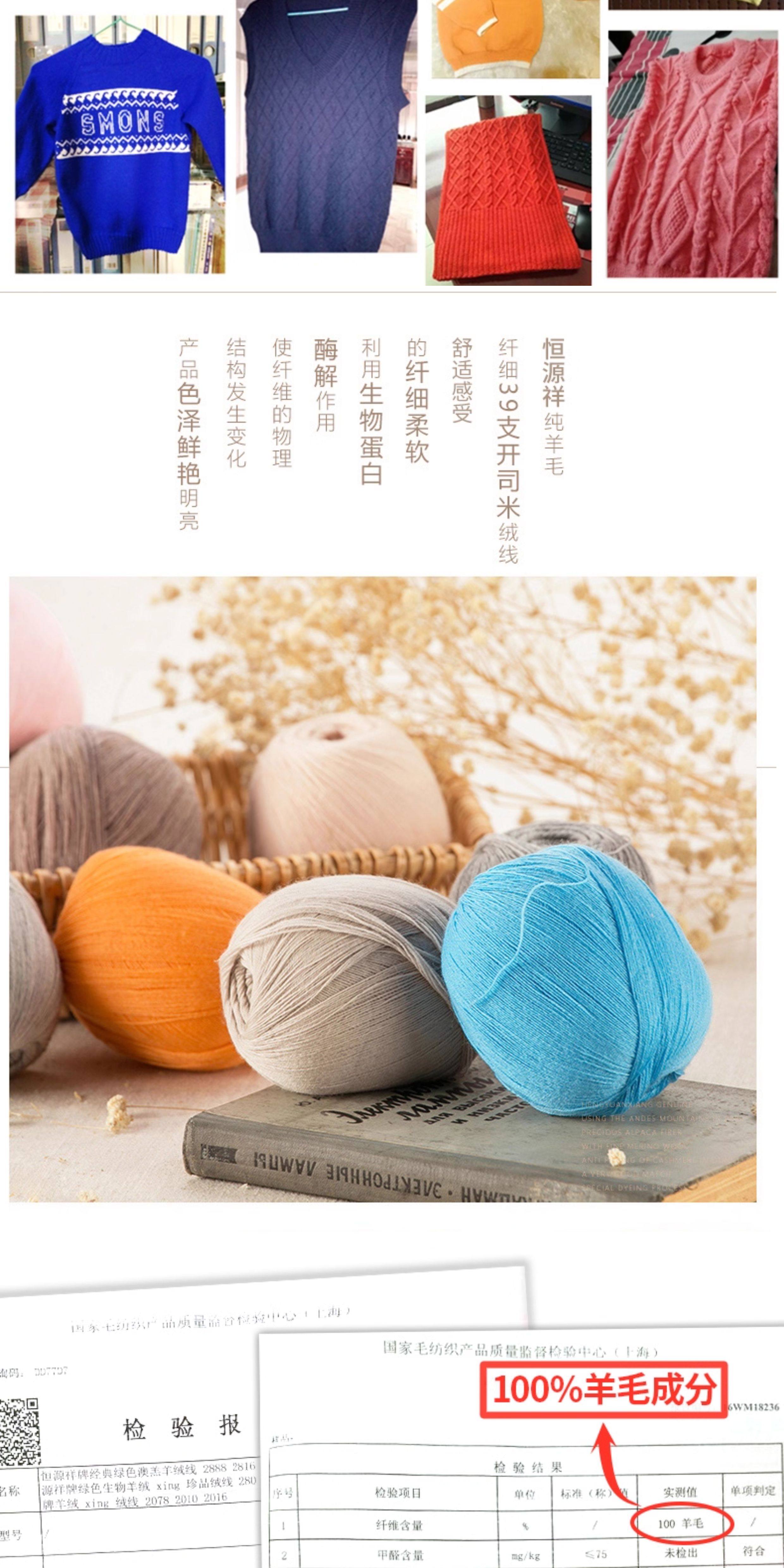 恒源祥 2239 золотая кашемировая нить, 100% нить из чистой шерсти, шарик из тонкой шерсти, детский кашемир, ручная вязка