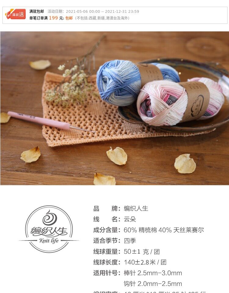[Плетение жизни Yun Duo] Малышка Tiansi Хлопковая линия ручной вязаной крюч