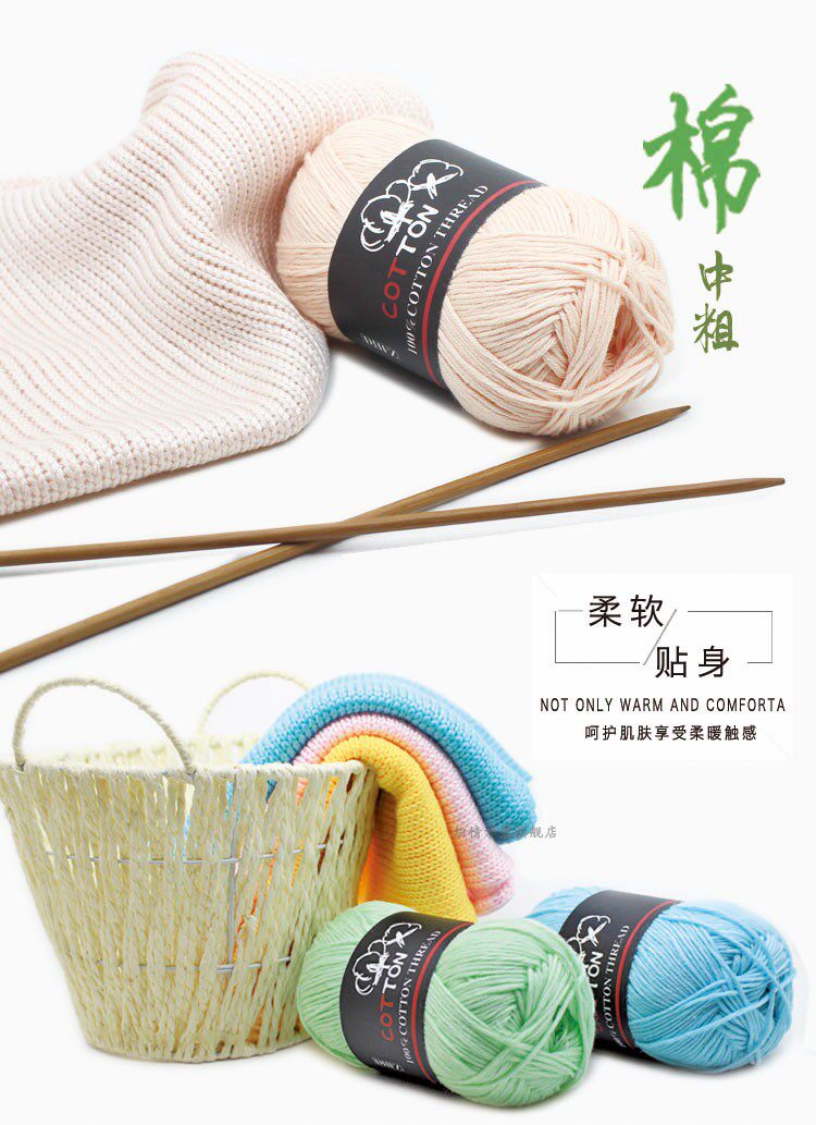 Хлопковый шерстяной крючок для вязания, детский свитер, трикотажный шарф, 100% хлопок