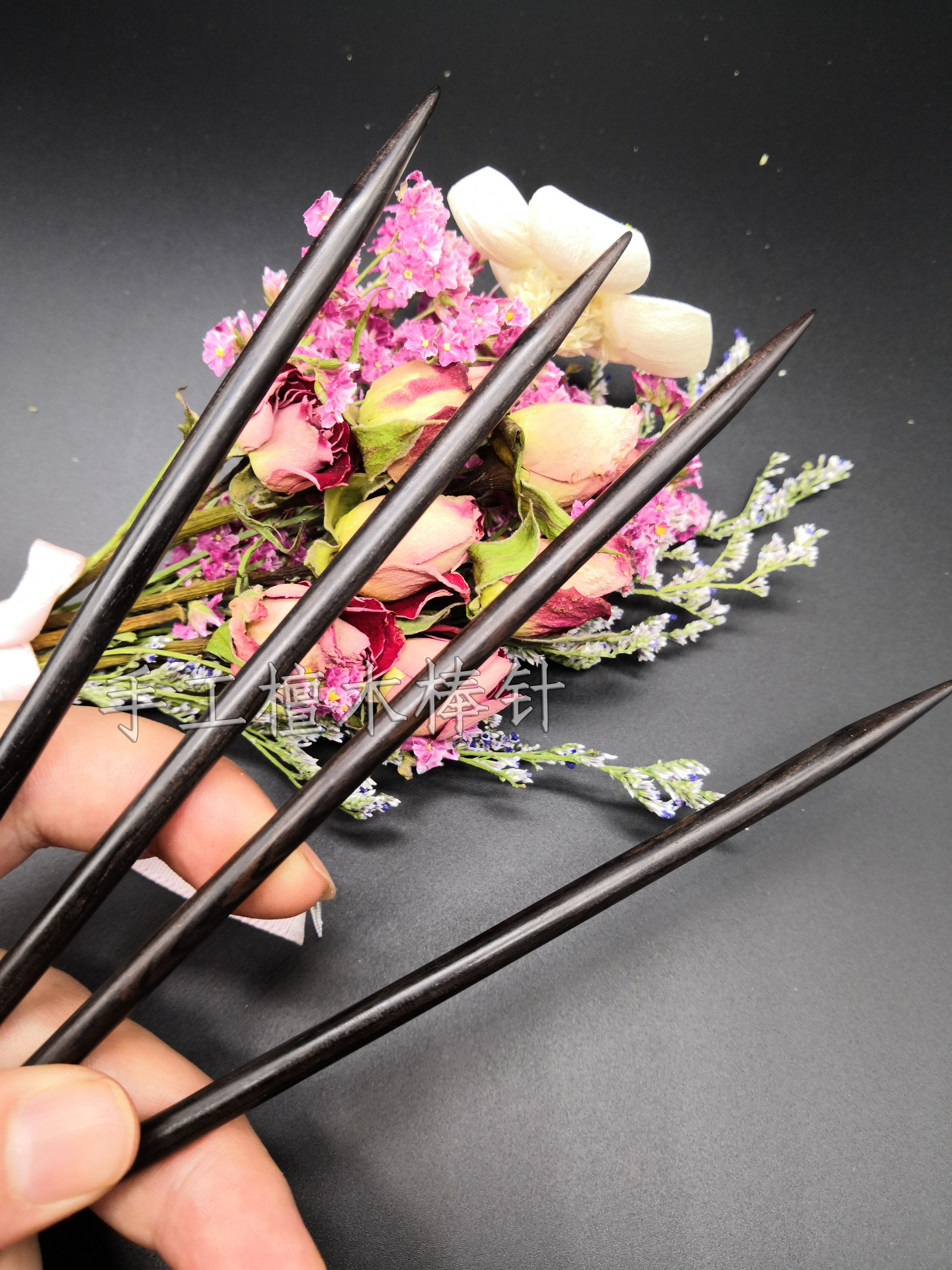Деревянные иглы не такие твердые, как стальные, и не такие прочные, как бамбуковые, но иглы из сандалового дерева являются коллекционными. Каждое дерево имеет разную текстуру. В процессе плетения переплетение становится более ярким и гладким.