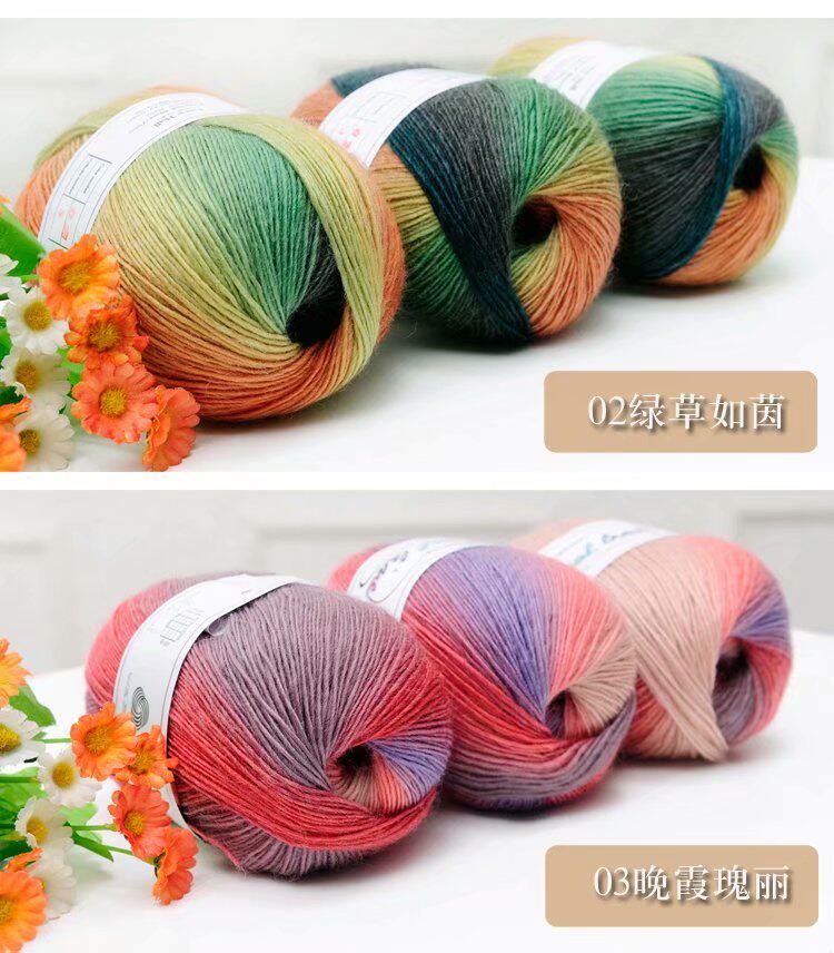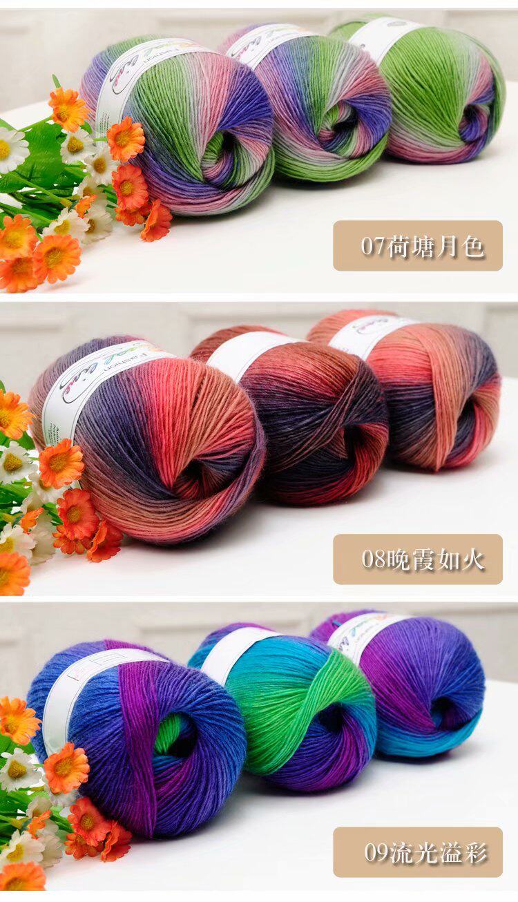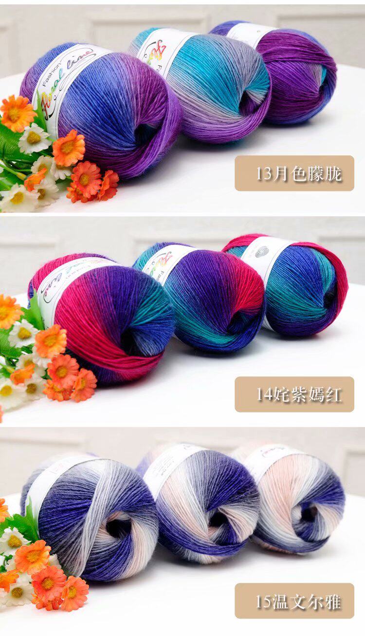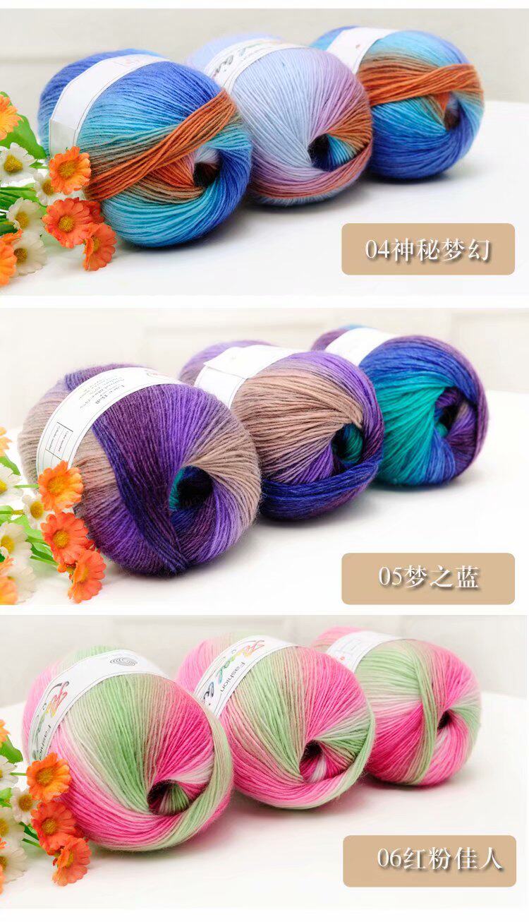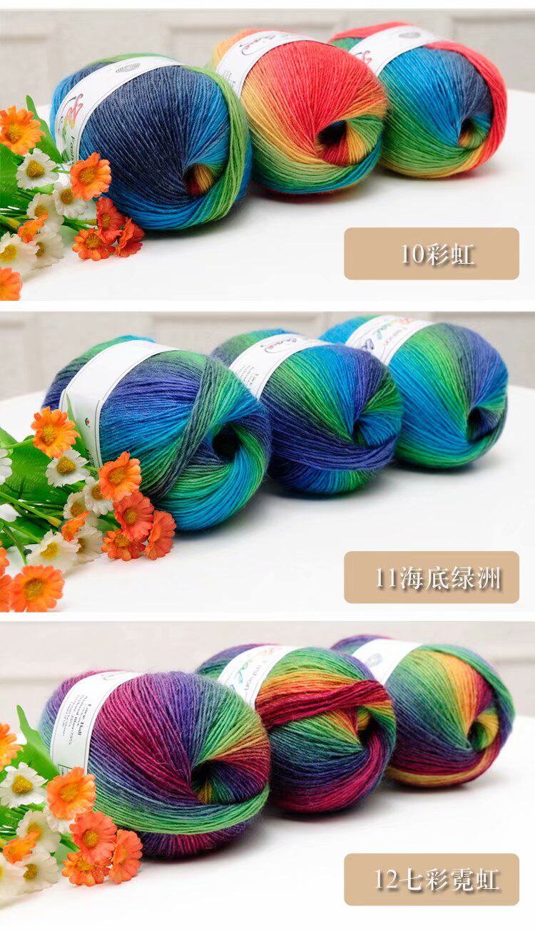Шерстяной радужный цветной клубок пряжи, крючок для вязания, накидка, градиент