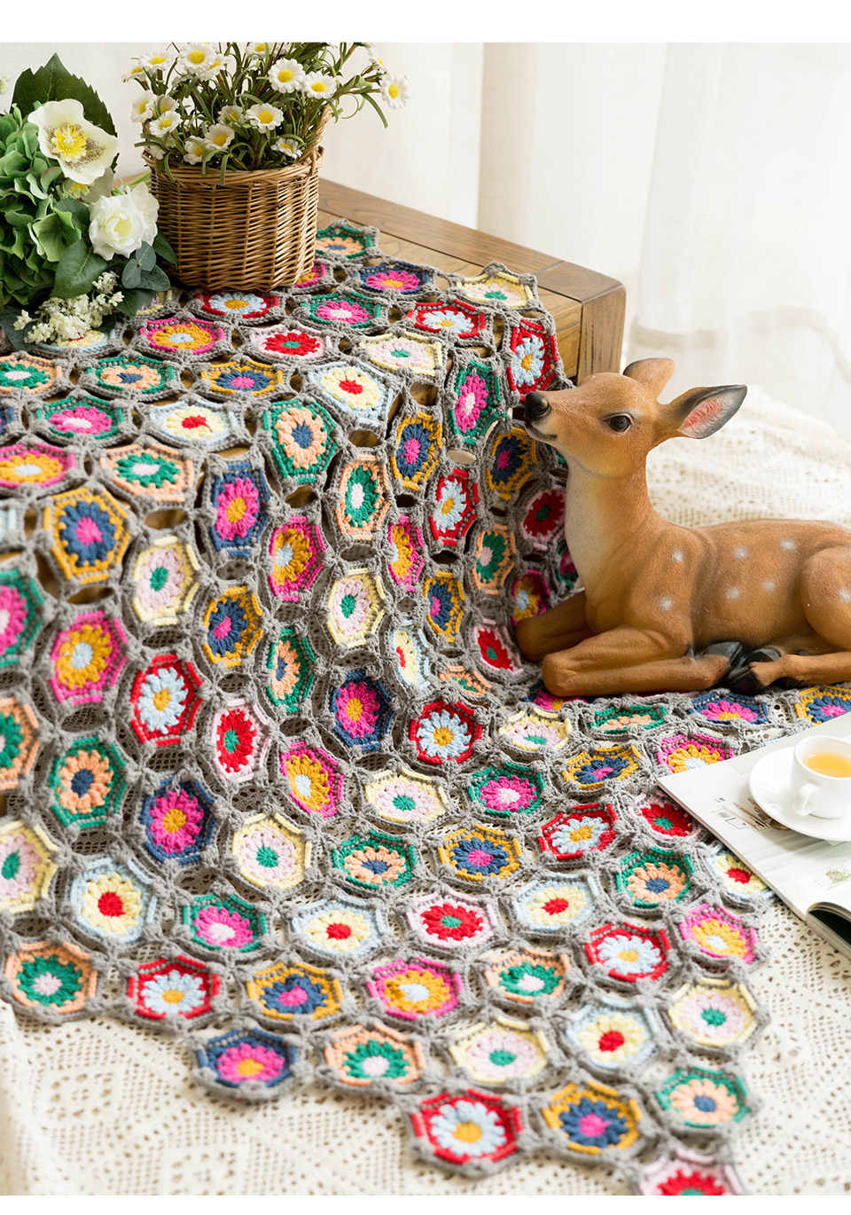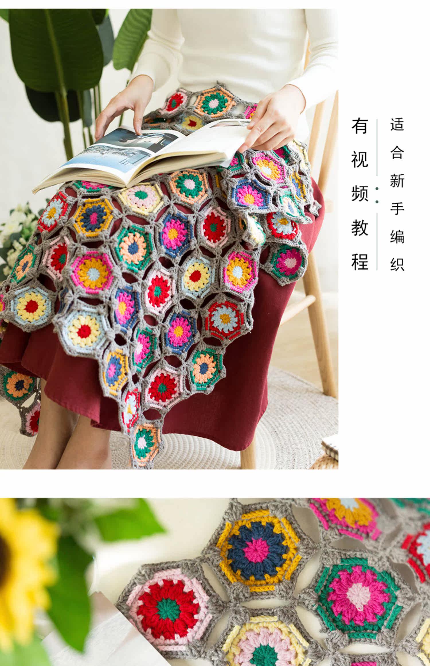 Шестиугольное геометричное одеяло, плетеный крючок для вязания ручной работы, набор материалов, DIY