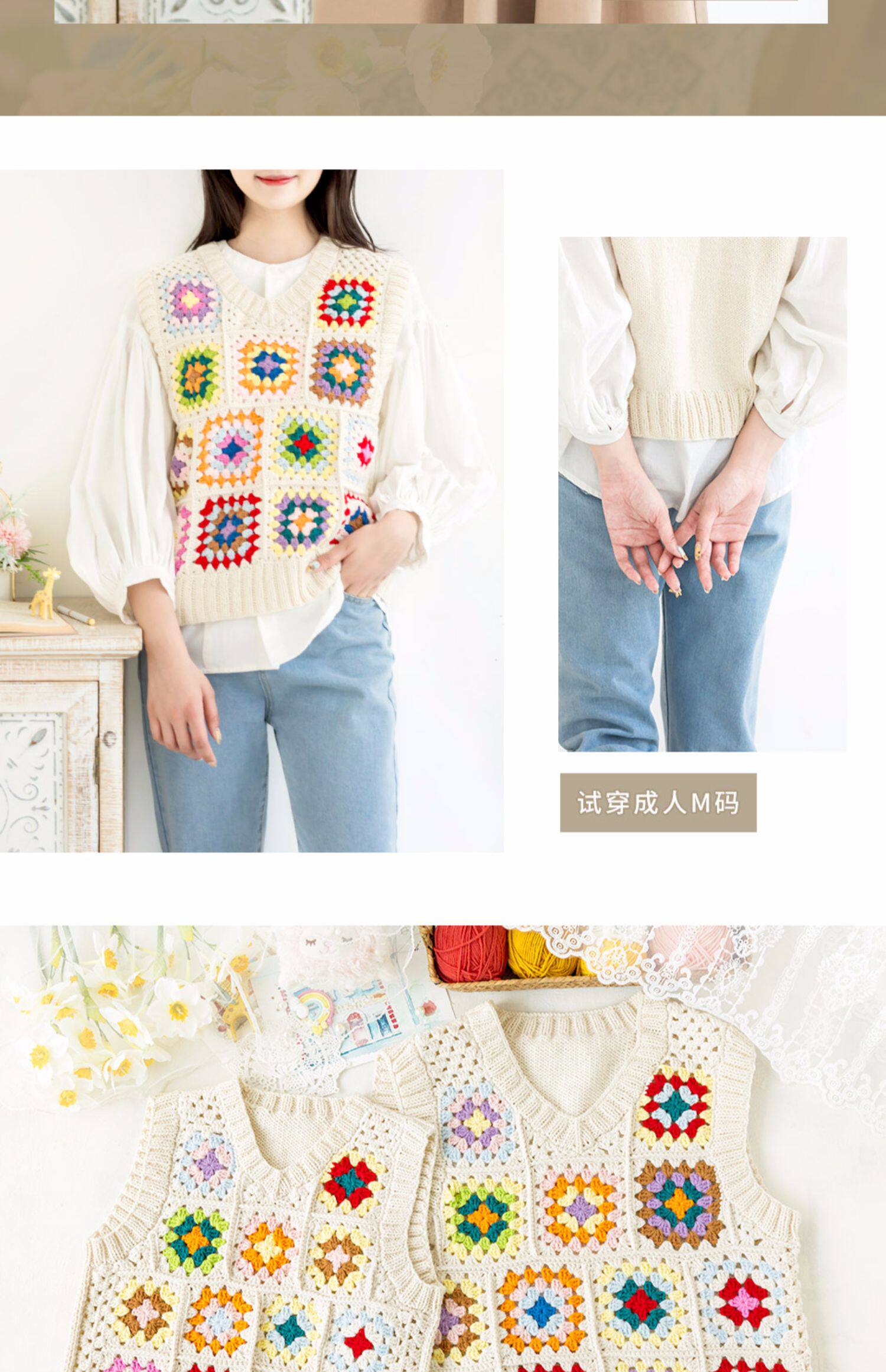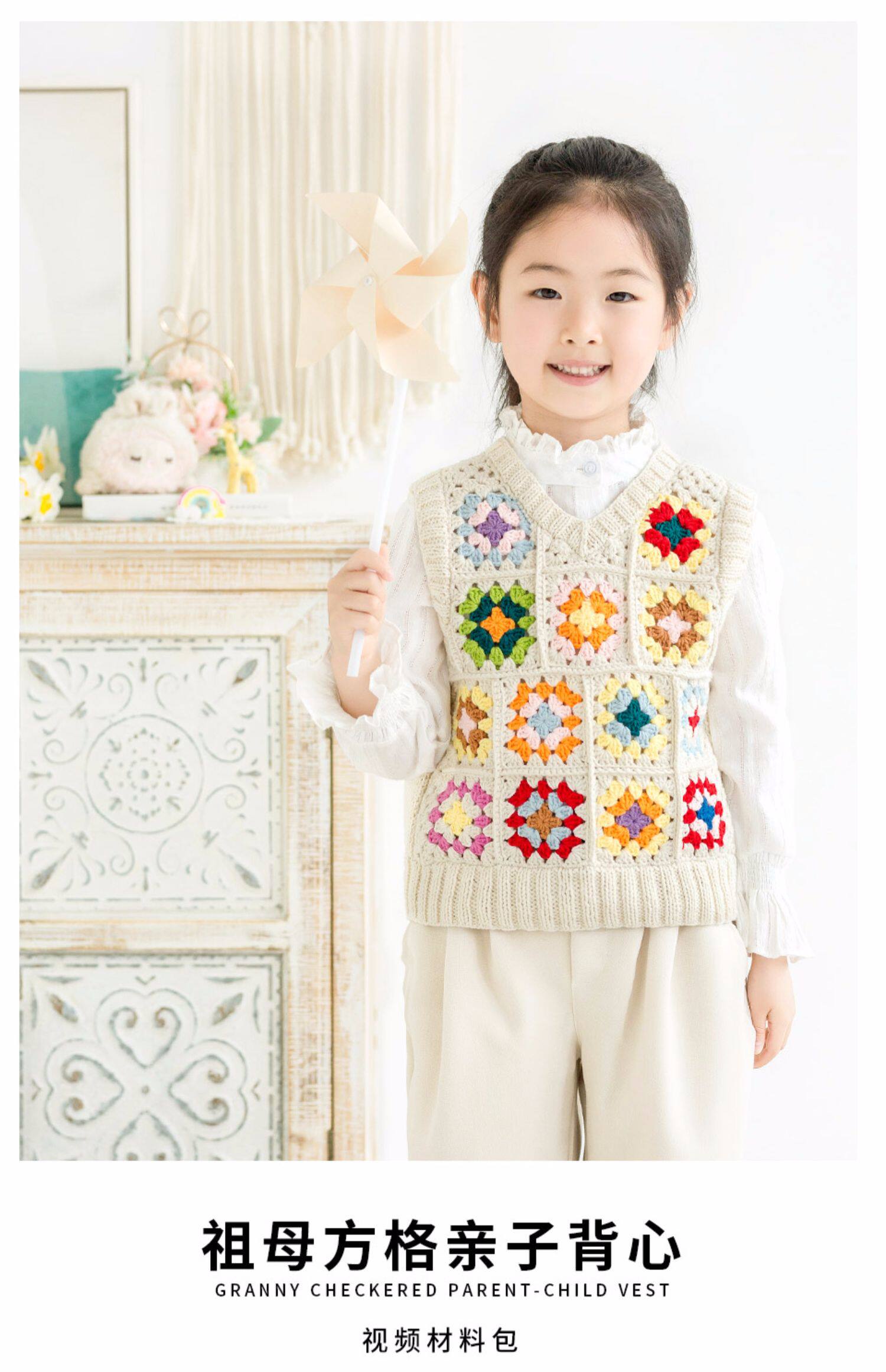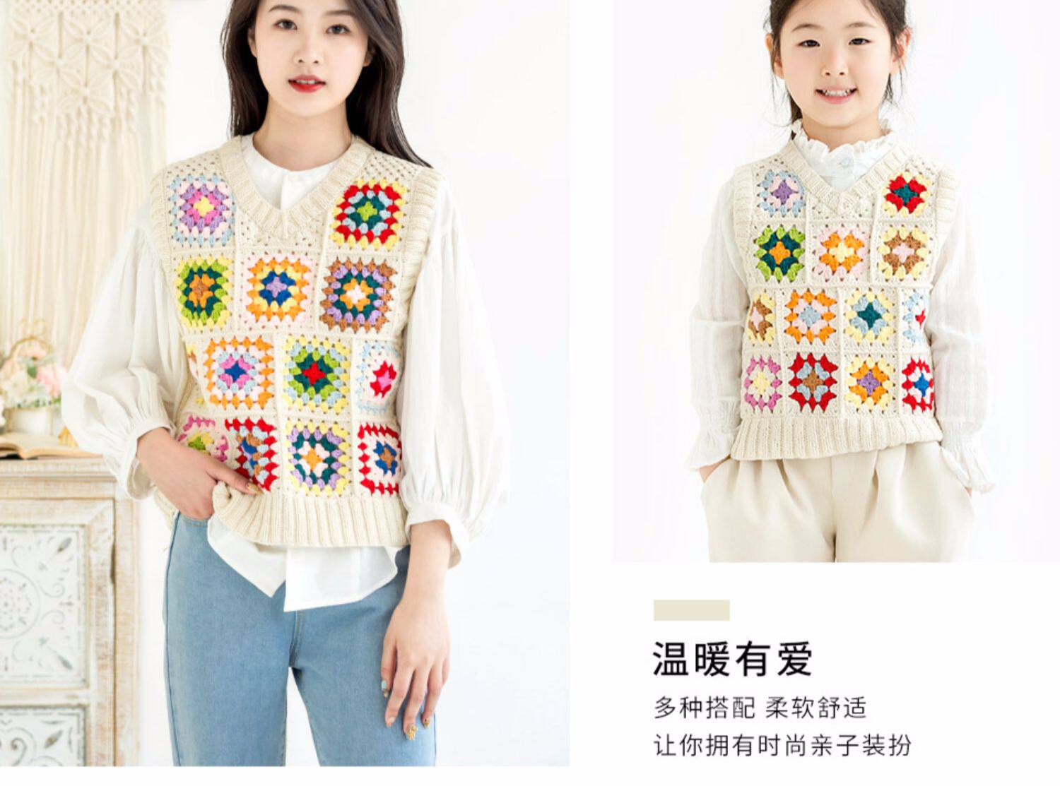 Жилет для матери и ребенка ручной работы, крючок для вязания, плетеный клубок пряжи, набор материалов, DIY, семейный стиль