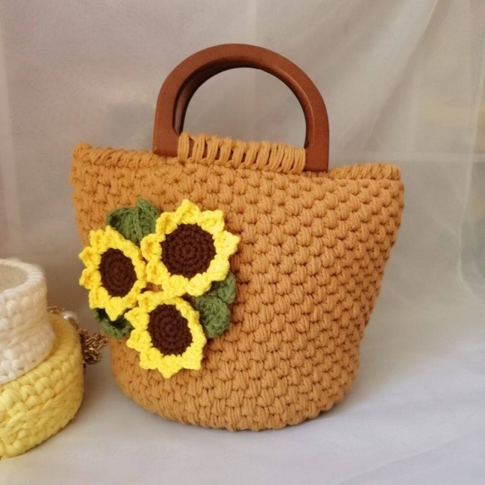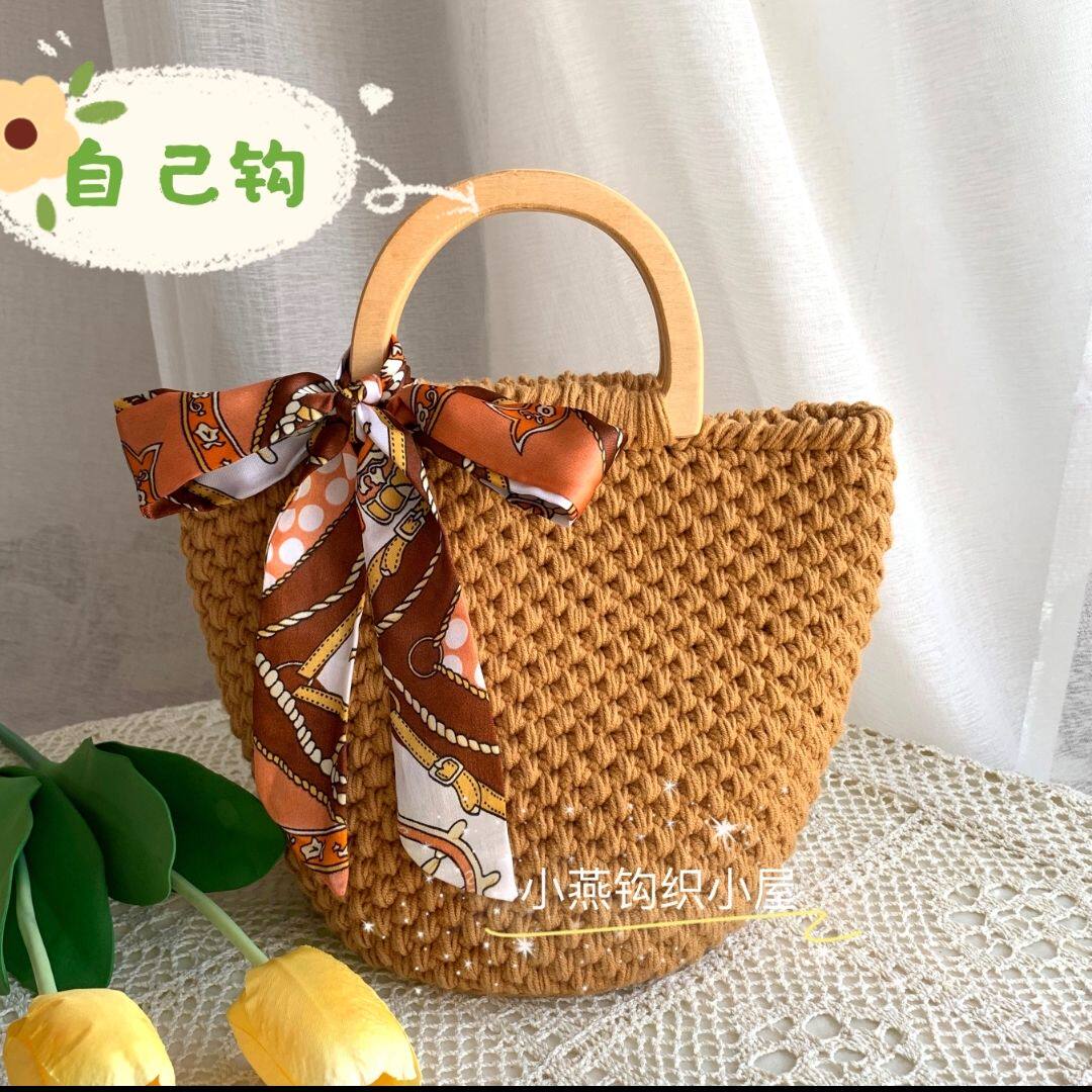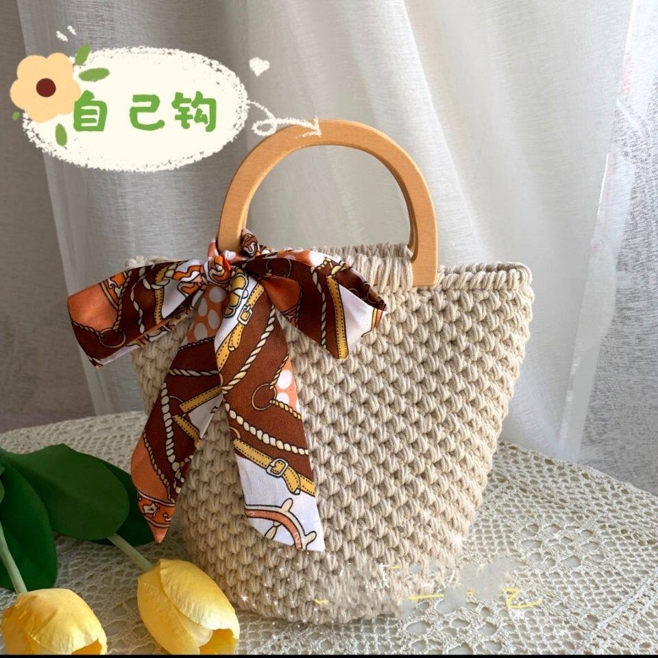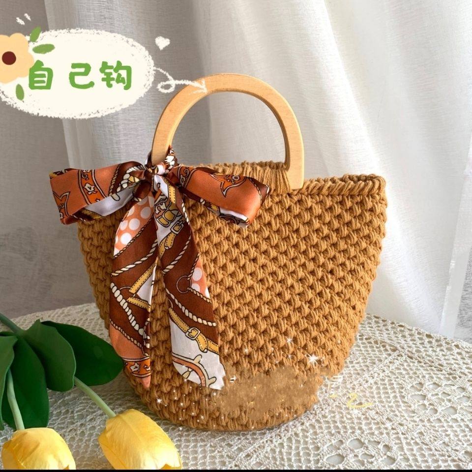 Сумка ручной работы, плетеный набор материалов, деревянный крючок для вязания, DIY, простой и элегантный дизайн