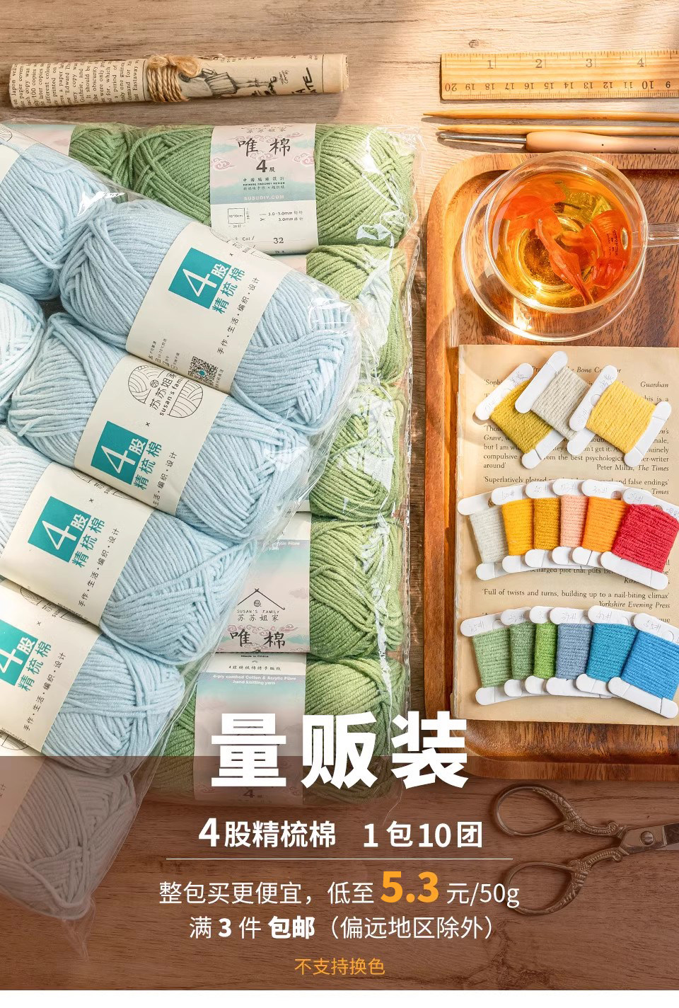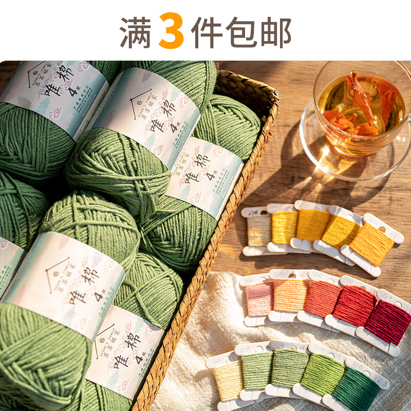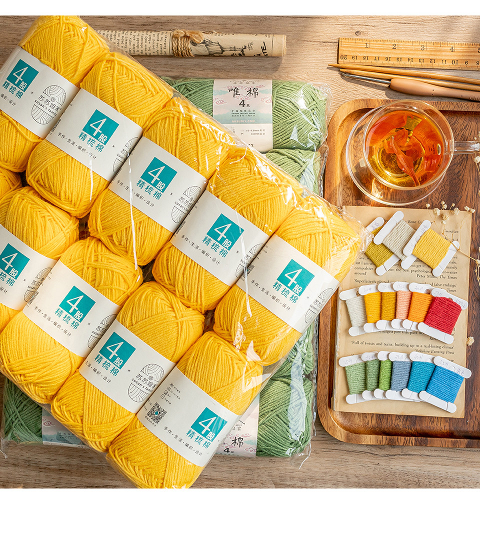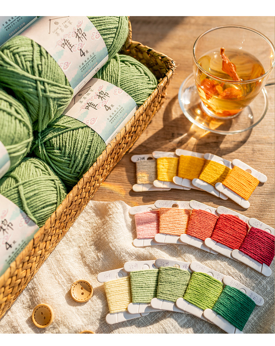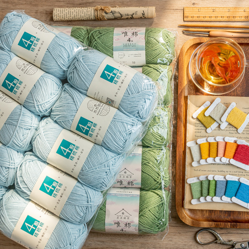 苏苏姐家 Массовая продажа, 4-ниточный моток чесаной хлопковой пряжи с молоком, тканый букет ручной работы своими руками, не поддерживает изменение цвета.