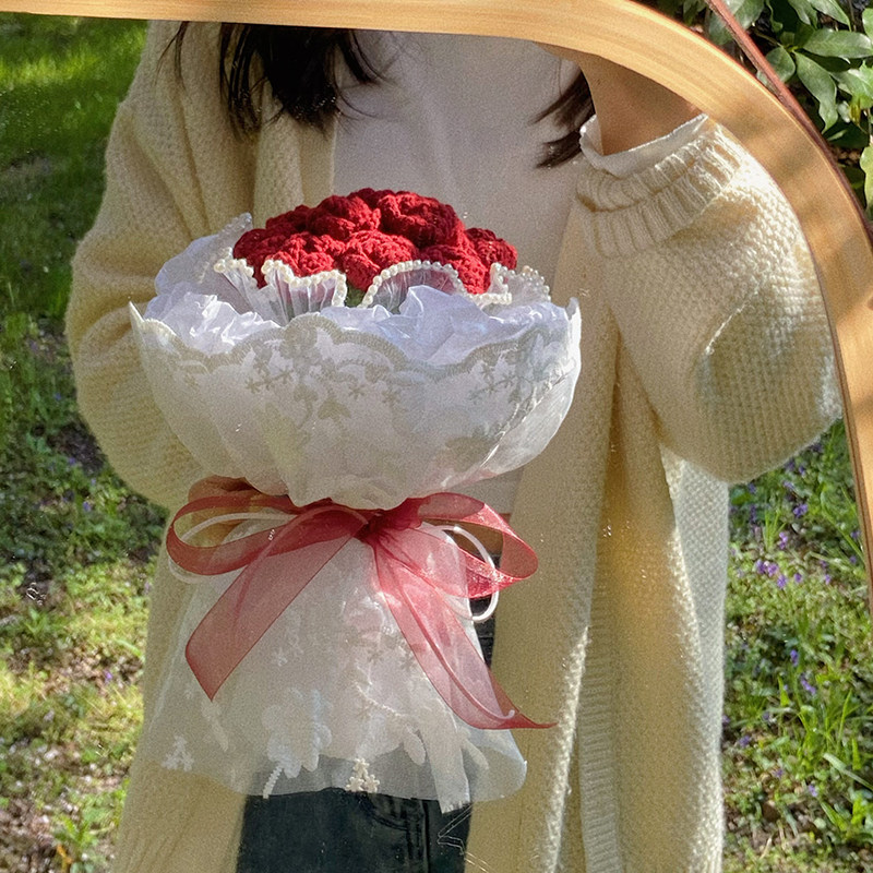DIY DIY DIY Маленький благовоний вязаный вязаный букет розовый букет букет домашний тканый готовый изделия, чтобы подарить девушке подарки на день рождения