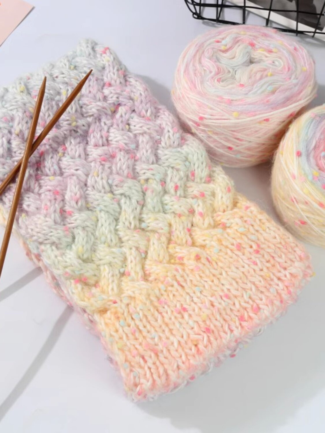 Радужный плетеный шарф ручной работы, клубок пряжи, DIY