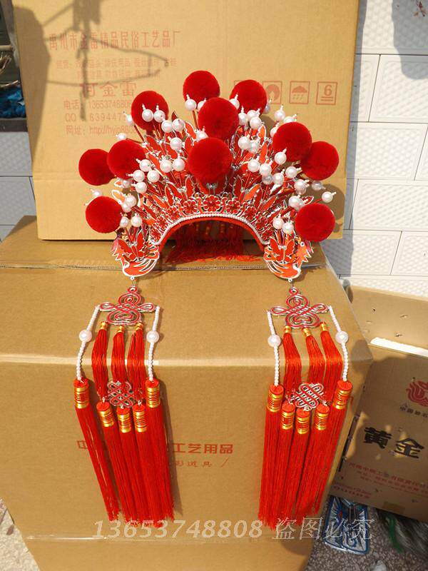 Красный милый убор головного убора невесты Феникс Гуансиасиажхан Шляпа Китайская свадебная студия Фотография сцена сцены сцены