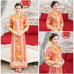 Классическая тиара для невесты с кисточками, комплект, ципао, традиционный свадебный наряд Сюхэ, аксессуар для волос, дракон и феникс