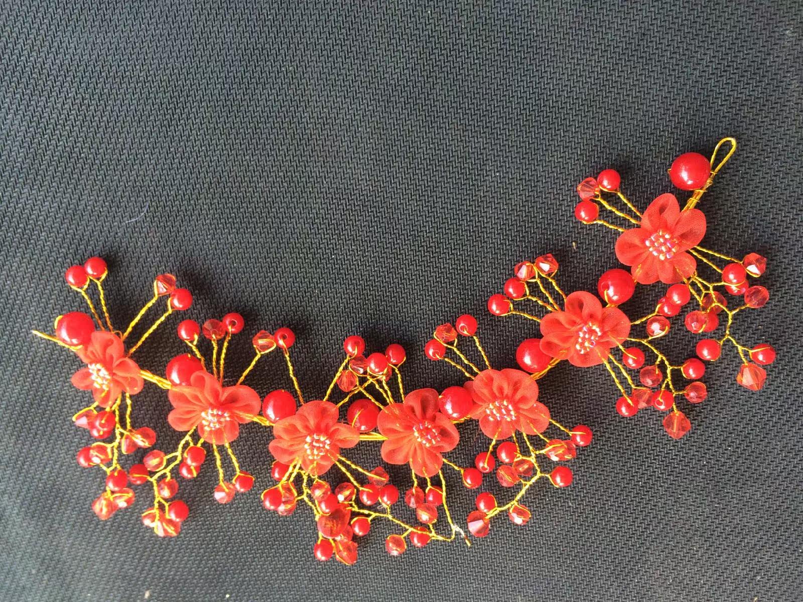 Корейский кружевной аксессуар для волос для невесты, красные аксессуары из жемчуга, кружевное платье, в цветочек