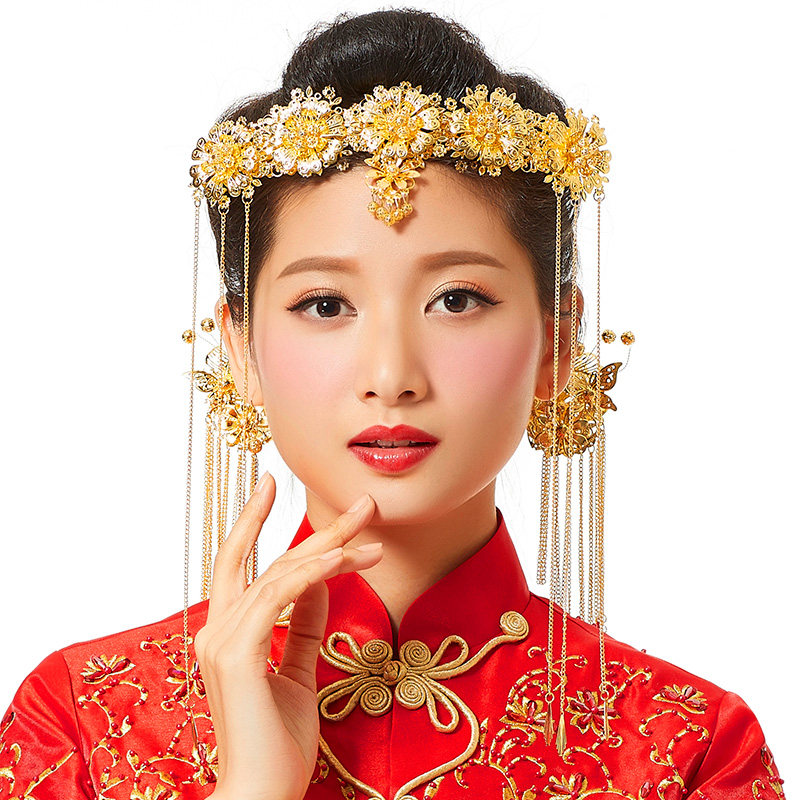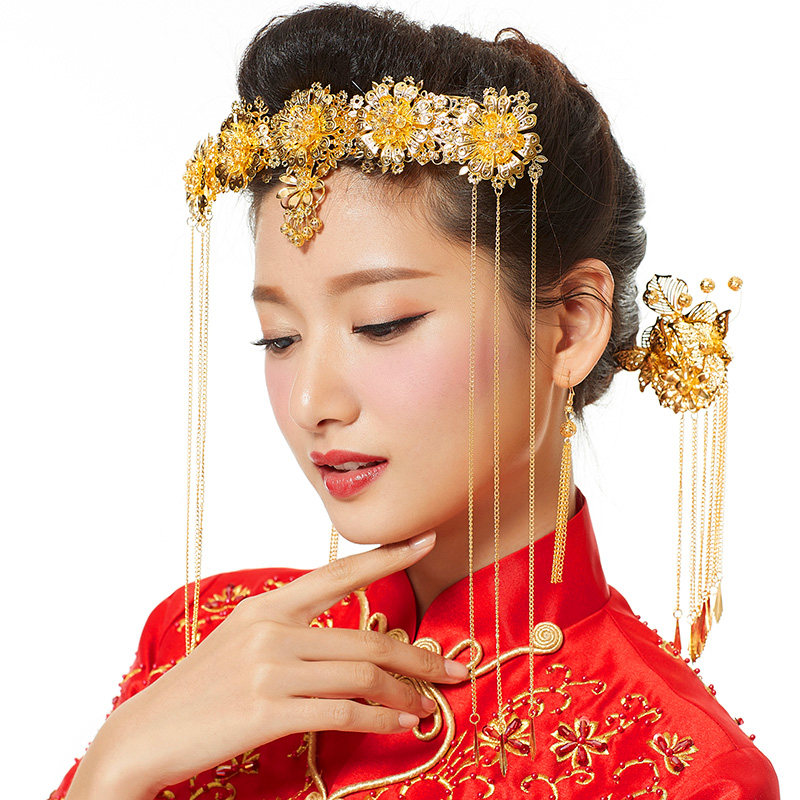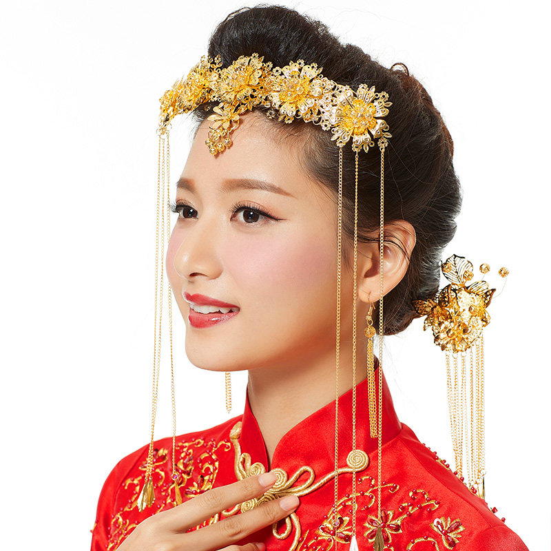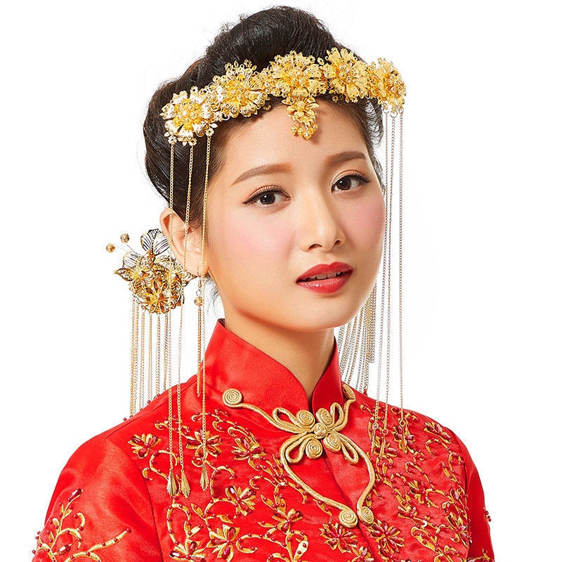 Свадебное платье, аксессуар для волос для невесты, ювелирное украшение, традиционный свадебный наряд Сюхэ, ципао, аксессуары