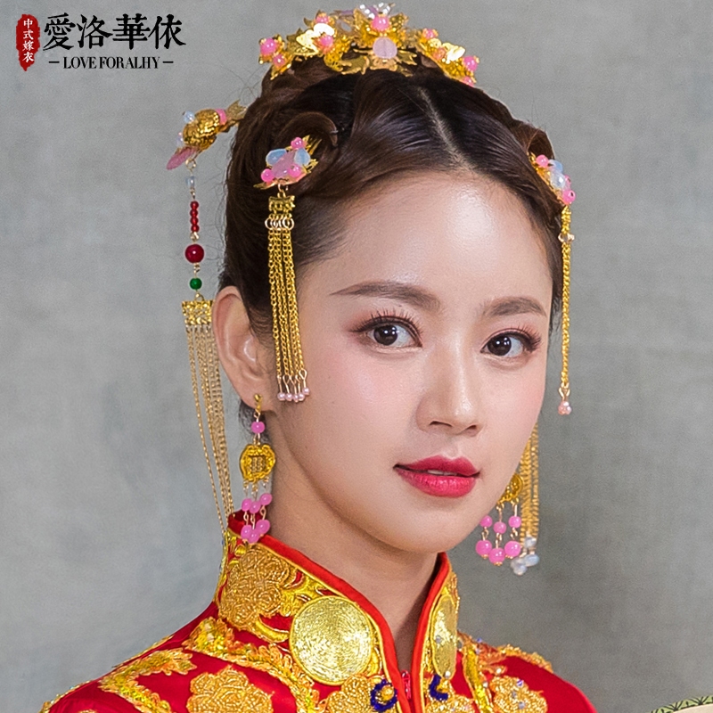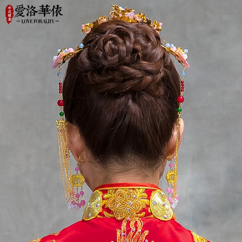 Традиционный свадебный наряд Сюхэ, аксессуар для волос для невесты, ретро вечернее платье, китайский стиль, дракон и феникс