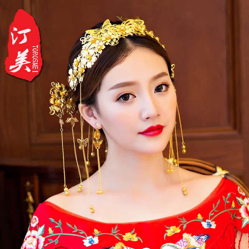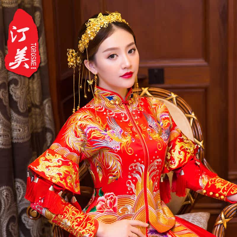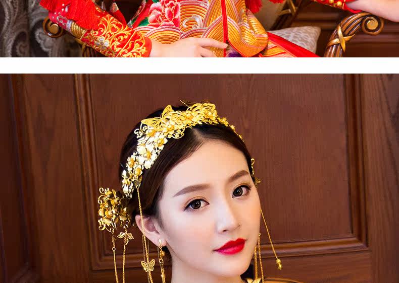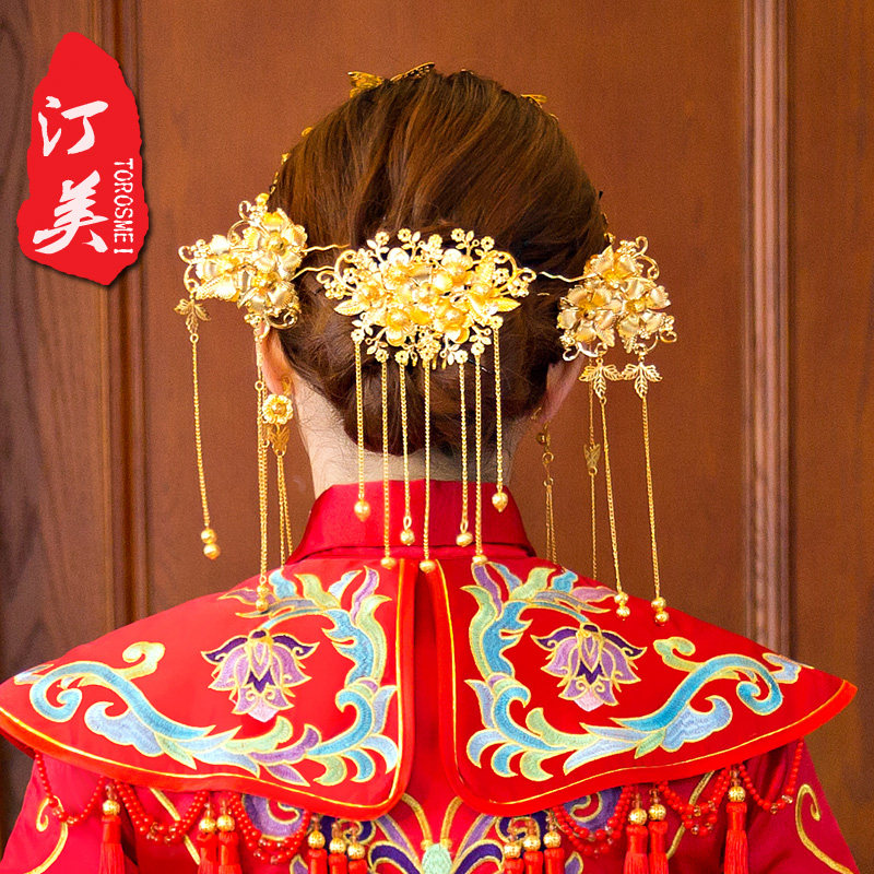 Красный цветной аксессуар для волос для невесты, традиционный свадебный наряд Сюхэ, платье с кисточками, китайская шпилька, китайский стиль