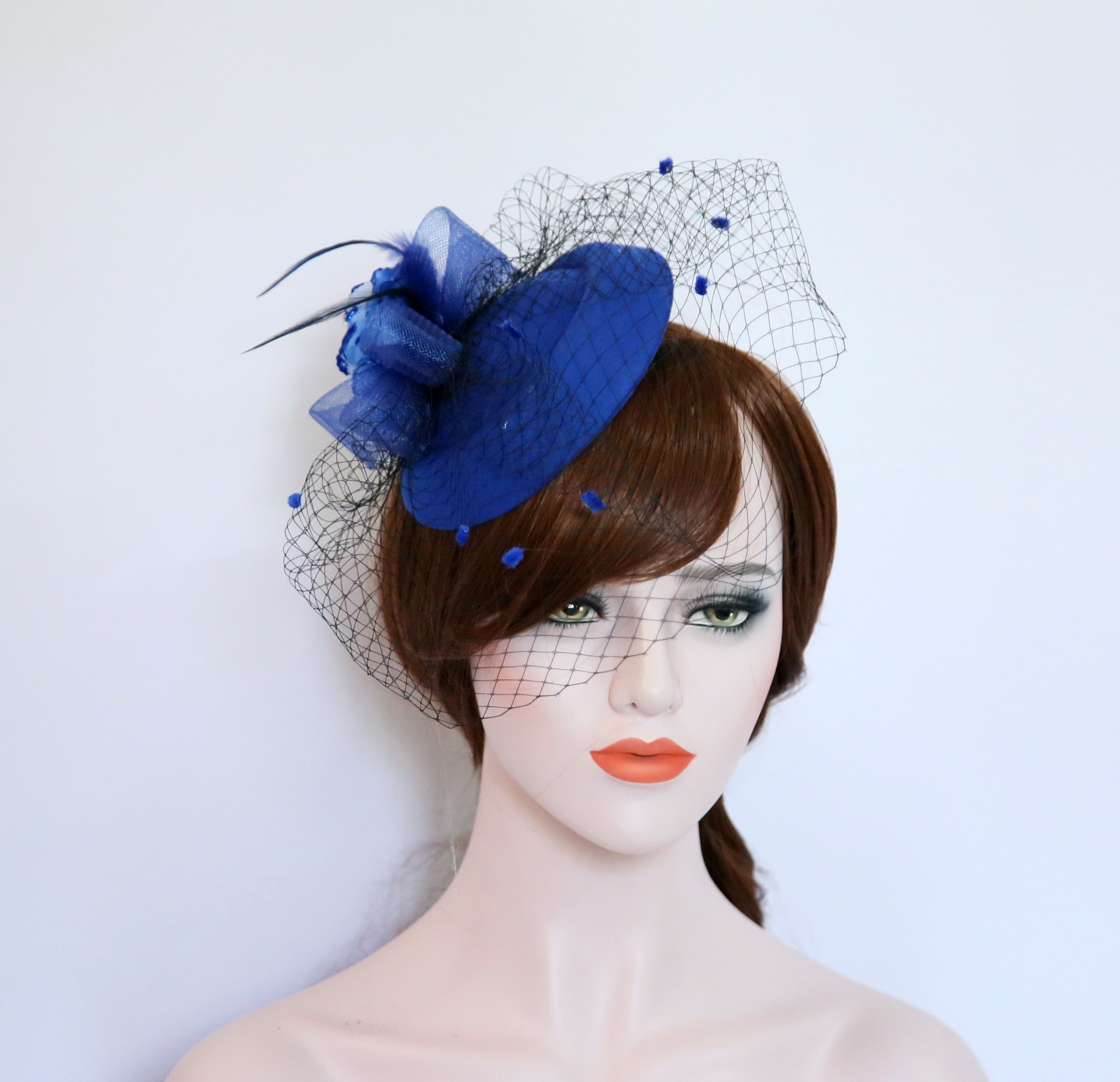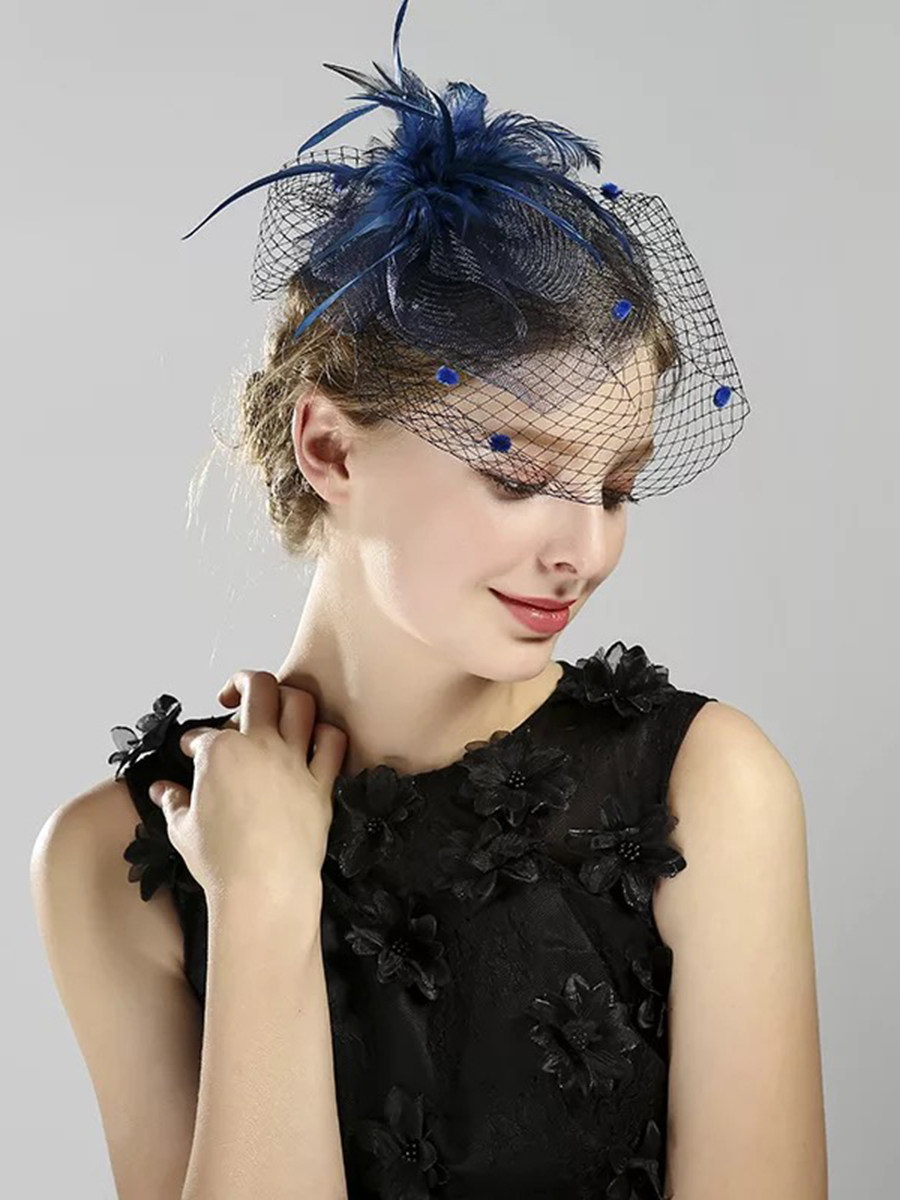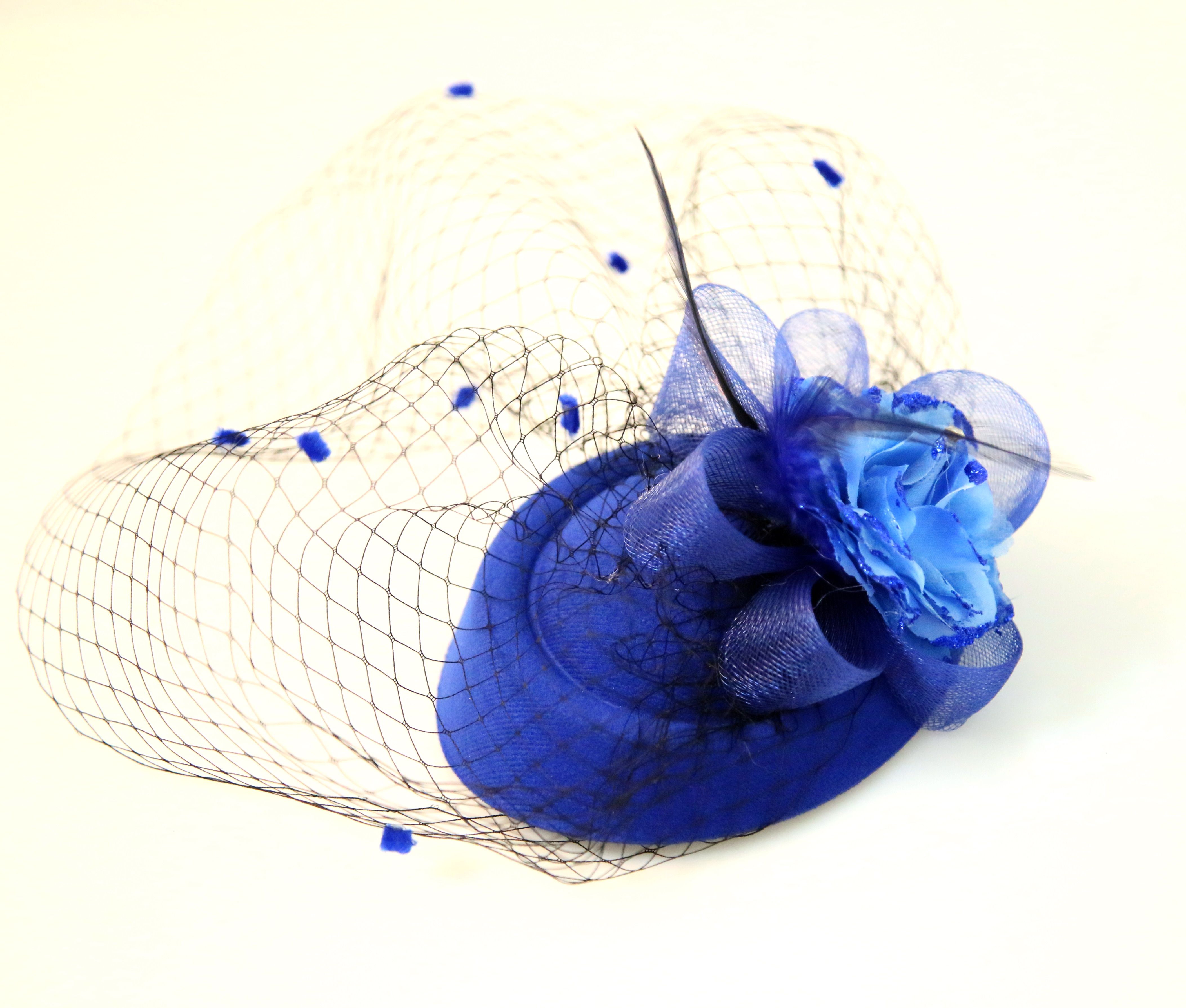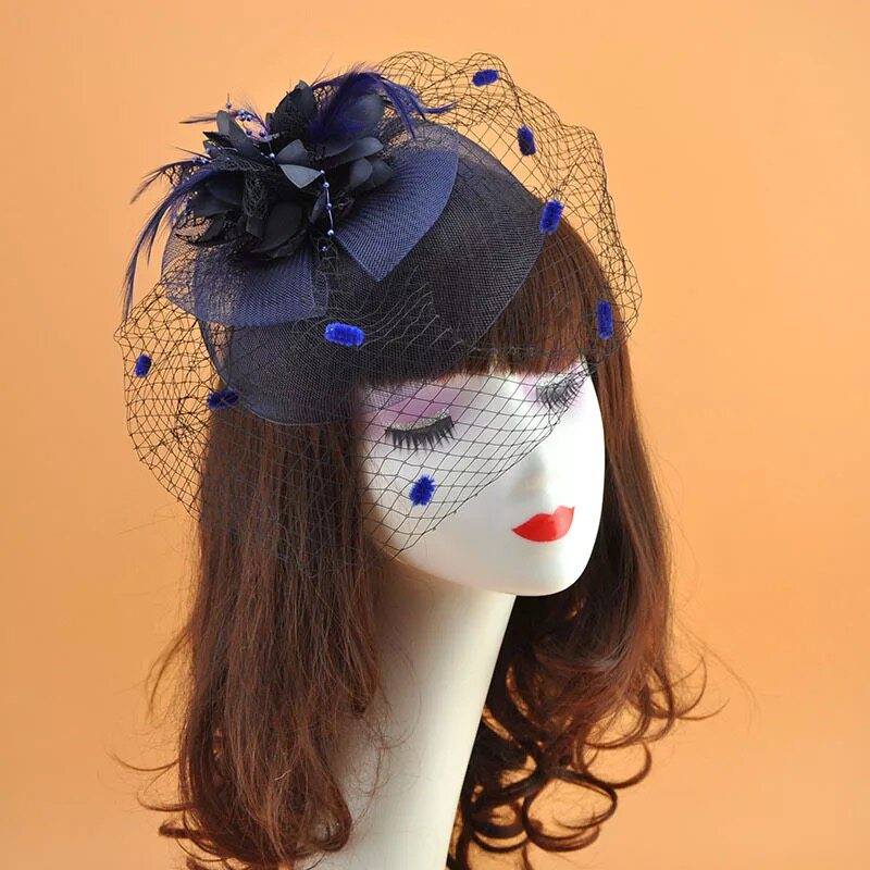 Синяя вуаль, аксессуар для волос, универсальная шапка