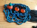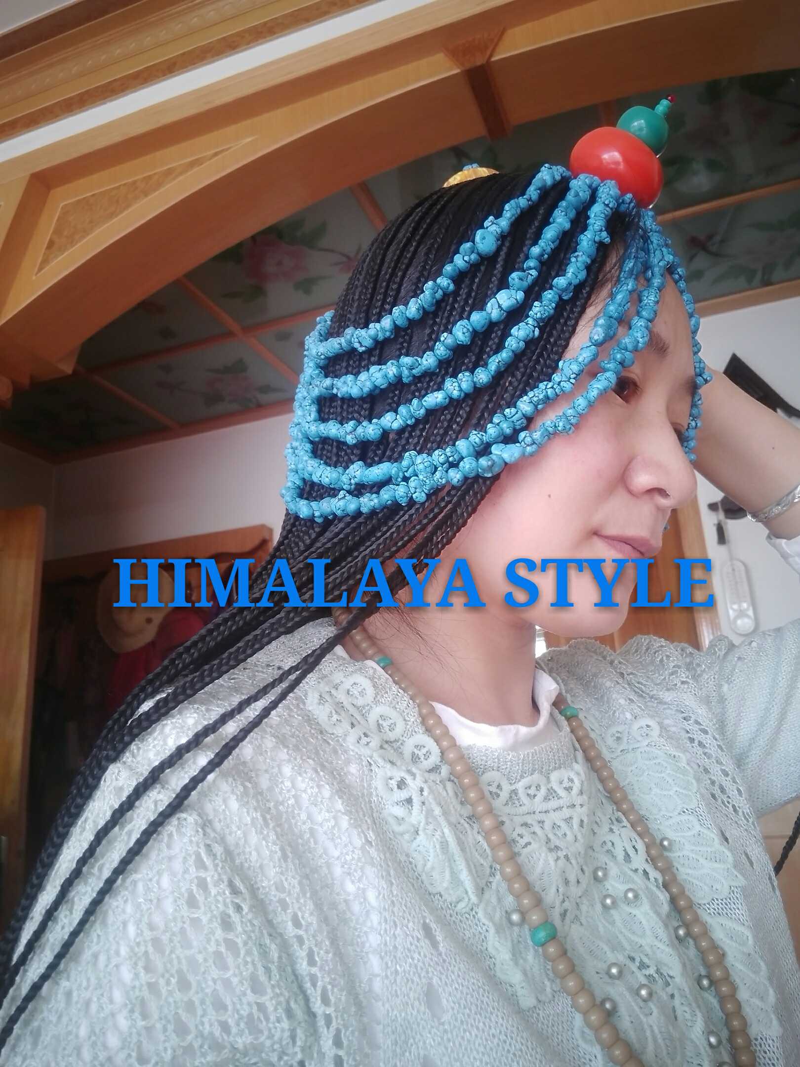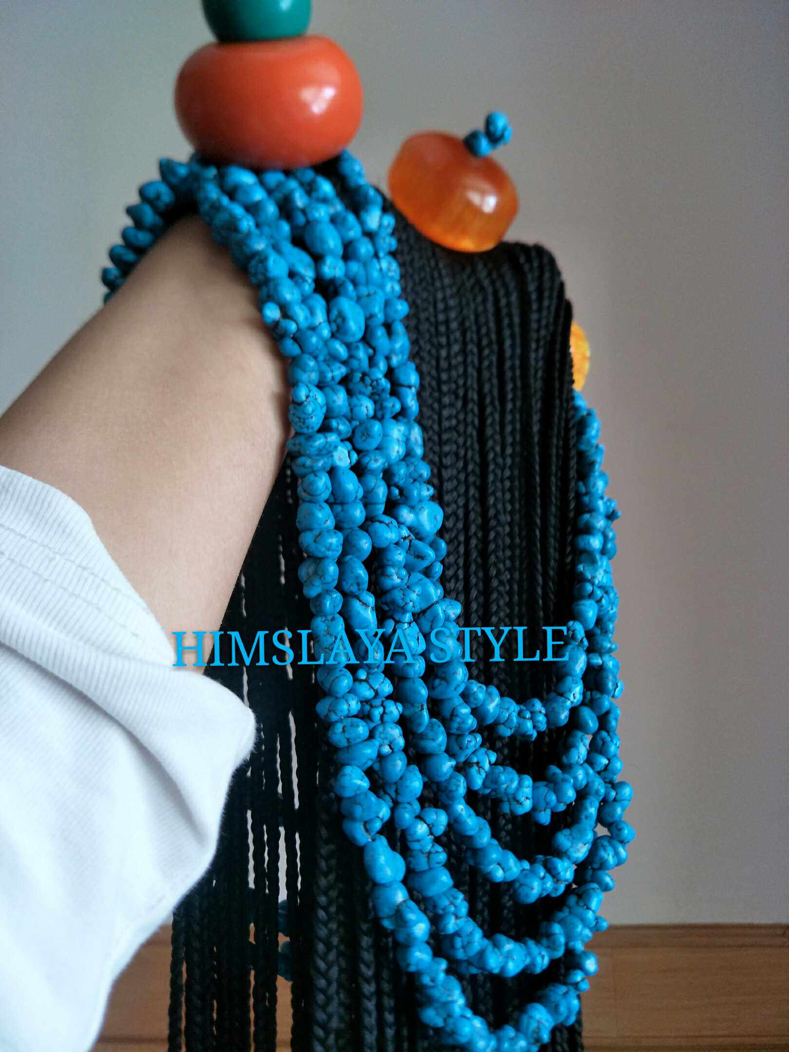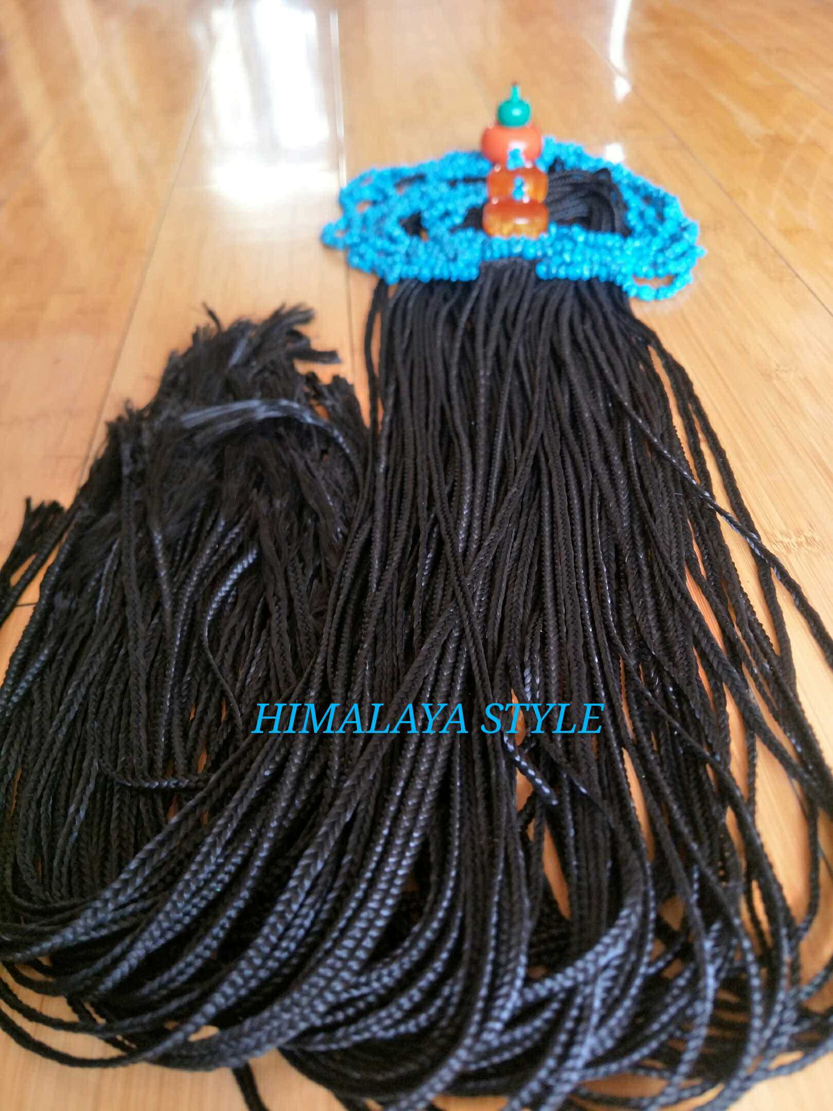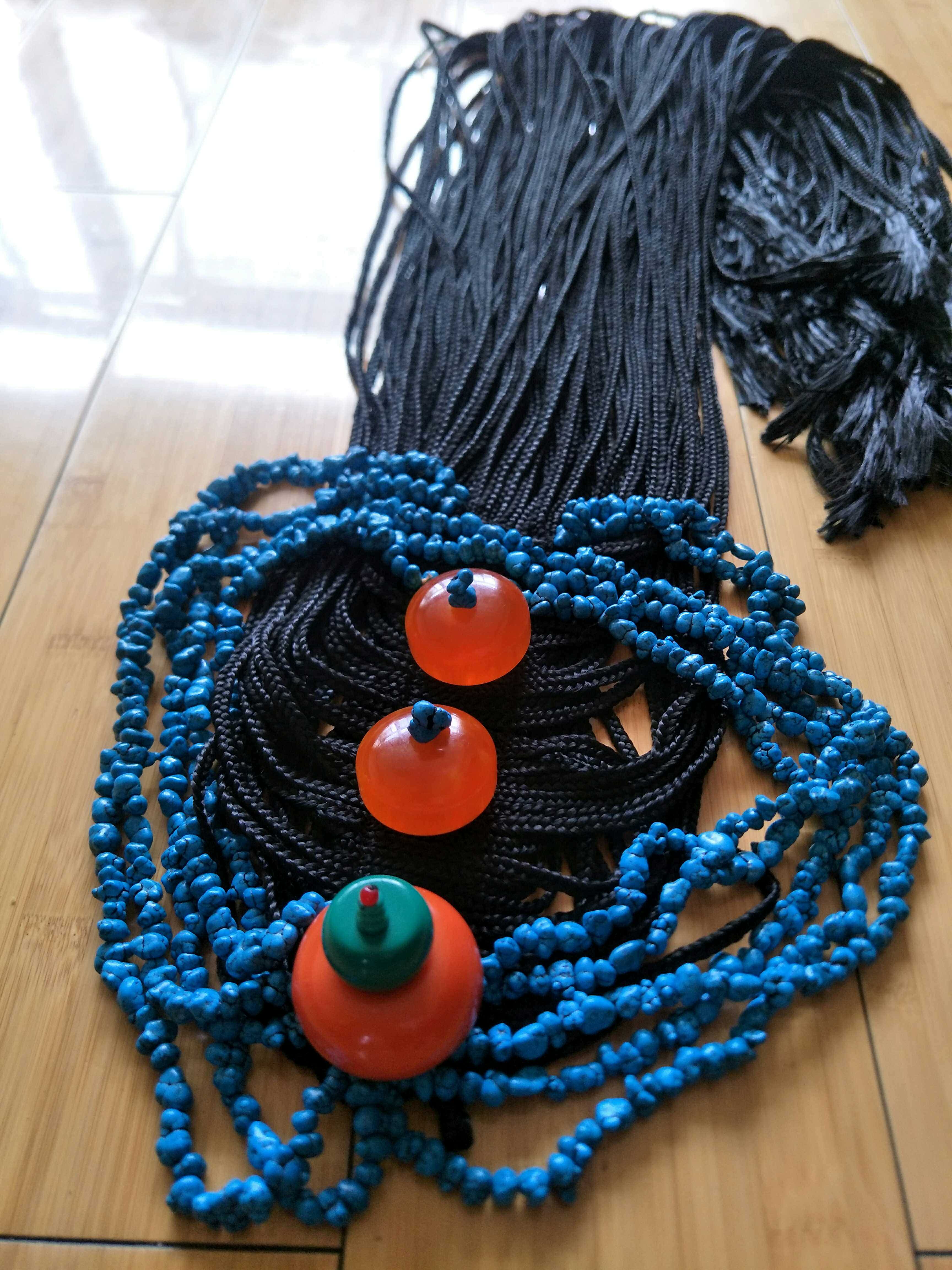 Синие бусины, черный парик с косичкой, аксессуар для волос из воскового агата