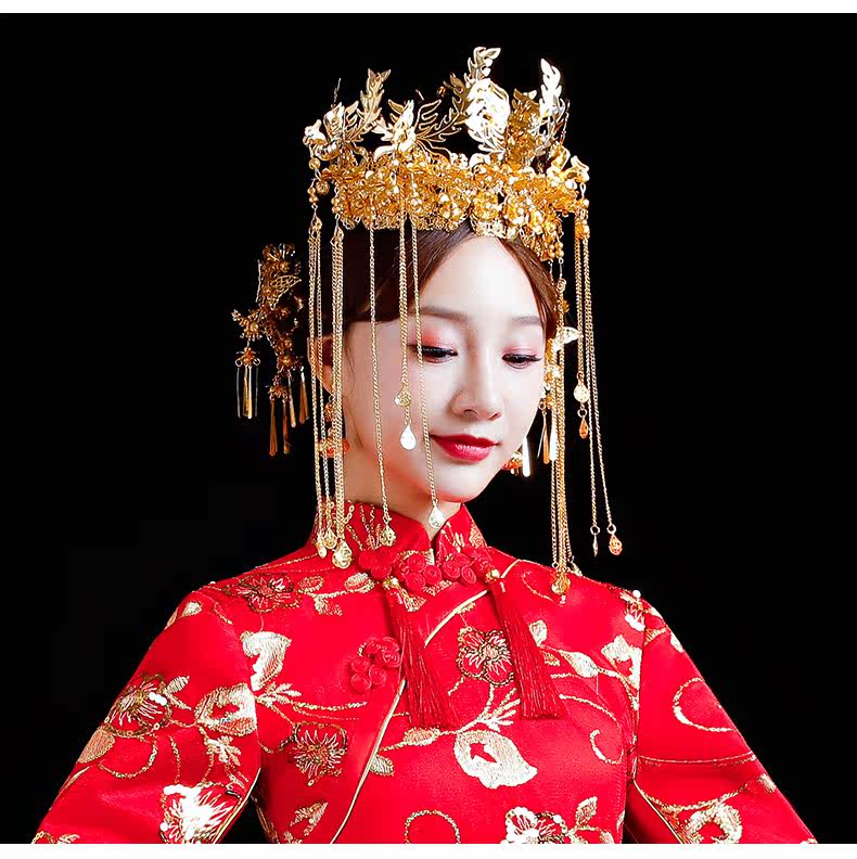 Золотой аксессуар для волос для невесты, коллекция 2021, дракон и феникс, китайский стиль