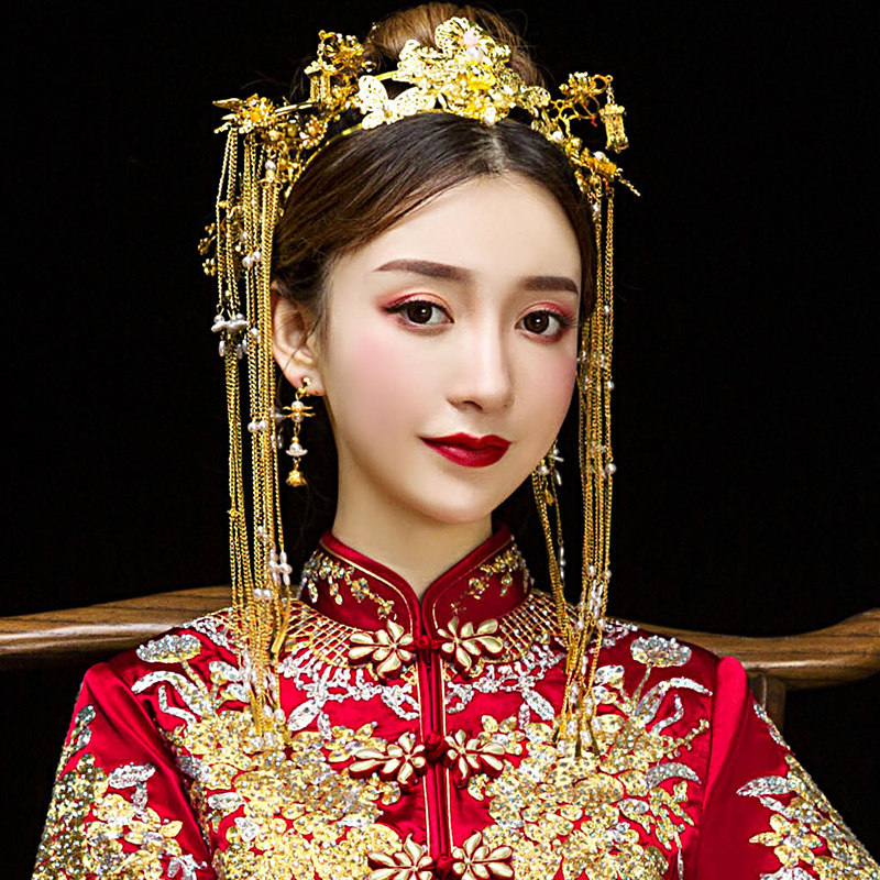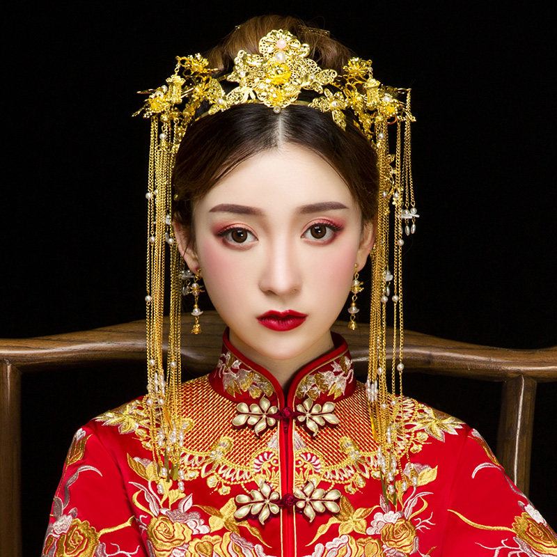 Аксессуар для волос для невесты, золотое классическое ювелирное украшение ручной работы с кисточками, китайский стиль