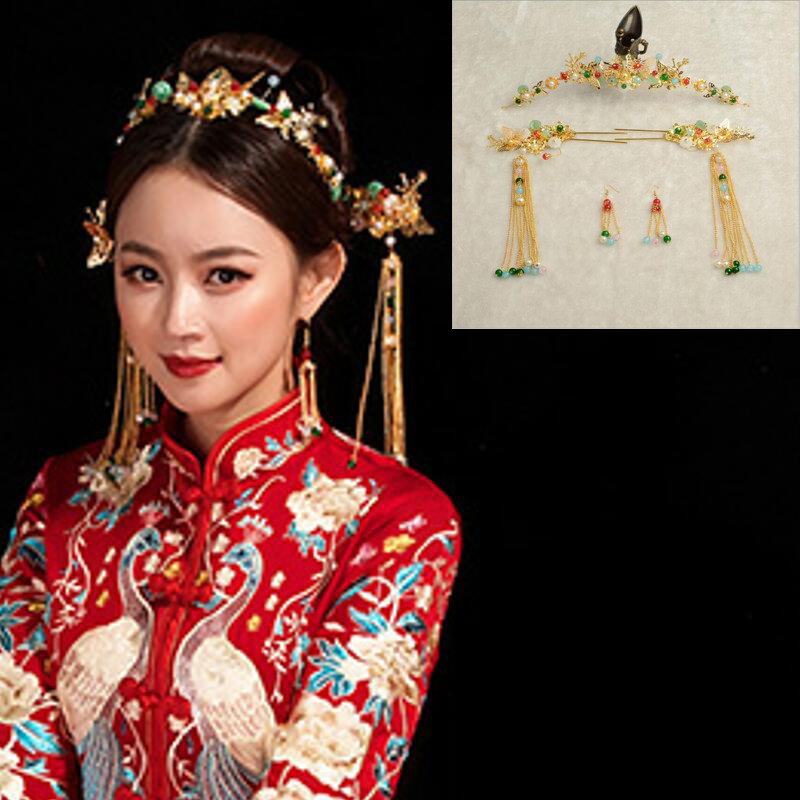 Традиционный свадебный наряд Сюхэ, аксессуар для волос для невесты с кисточками, свадебное платье, коллекция 2022, китайский стиль