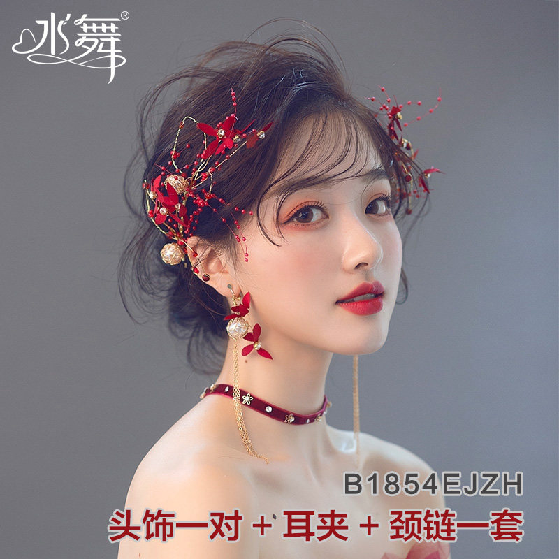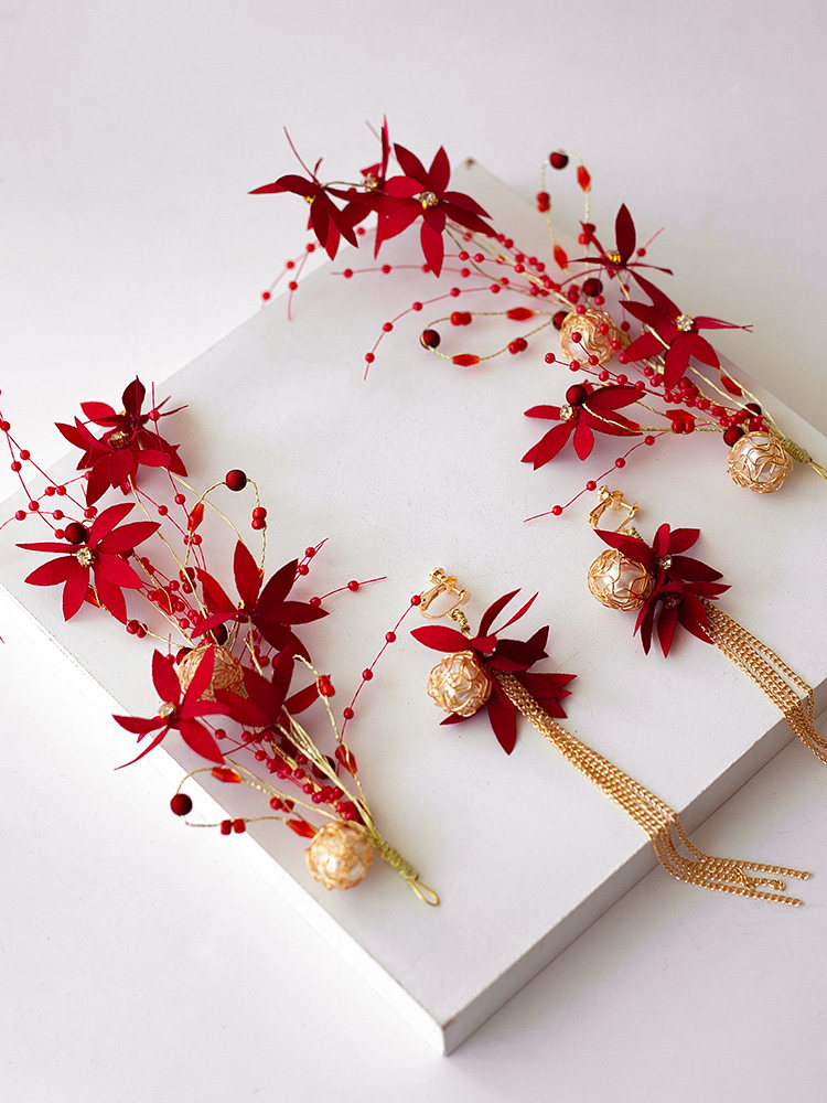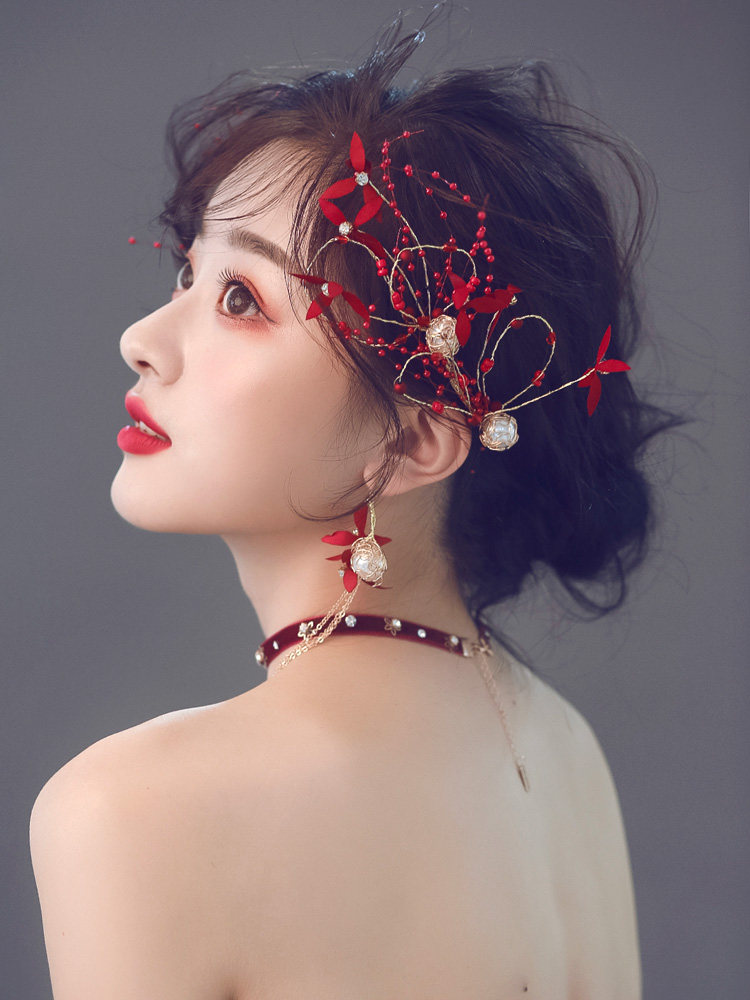 Вечернее платье для невесты, бордовый аксессуар для волос, в цветочек, простой и элегантный дизайн