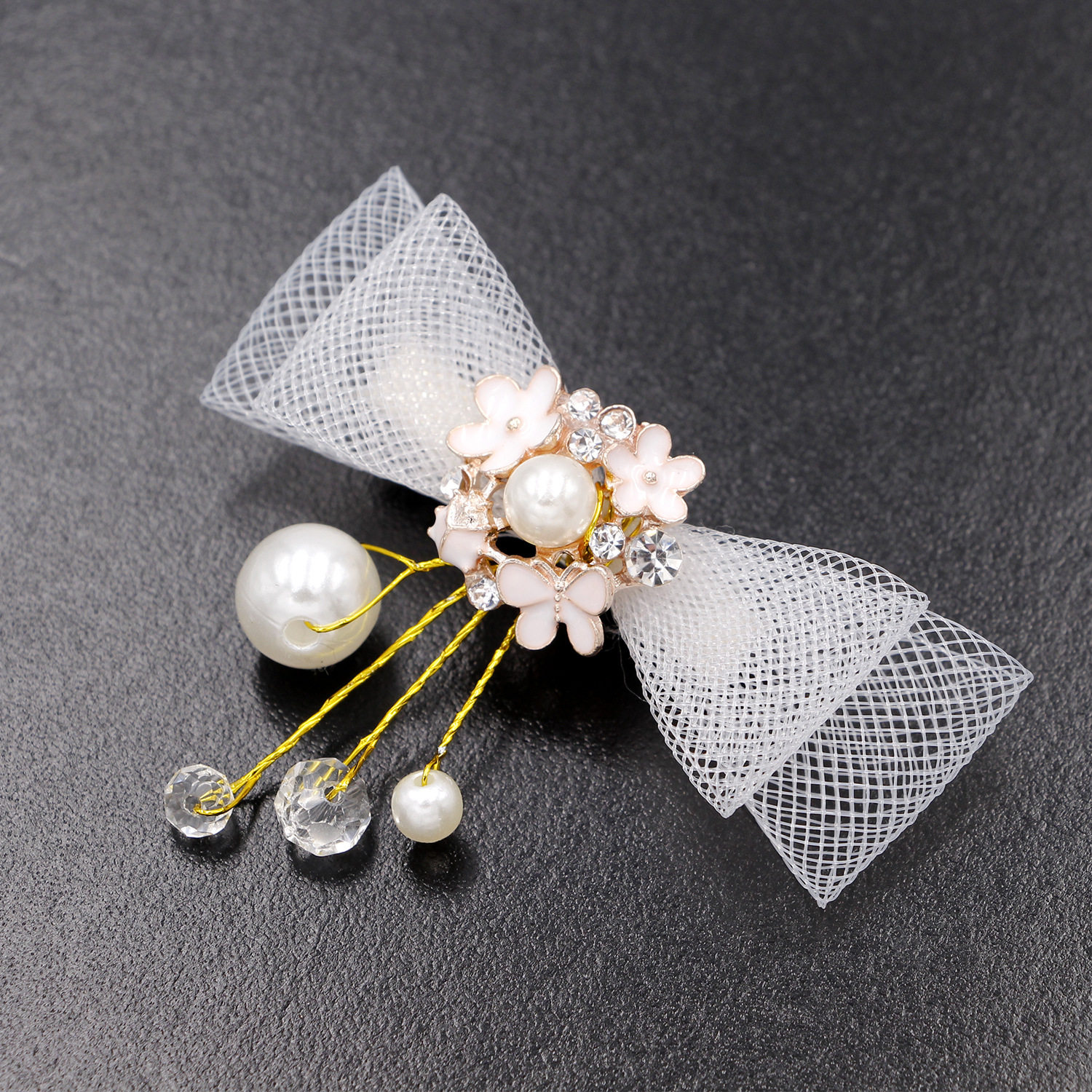 Корейская заколка для волос, белый модный аксессуар для волос с бантиком ручной работы из жемчуга, в цветочек