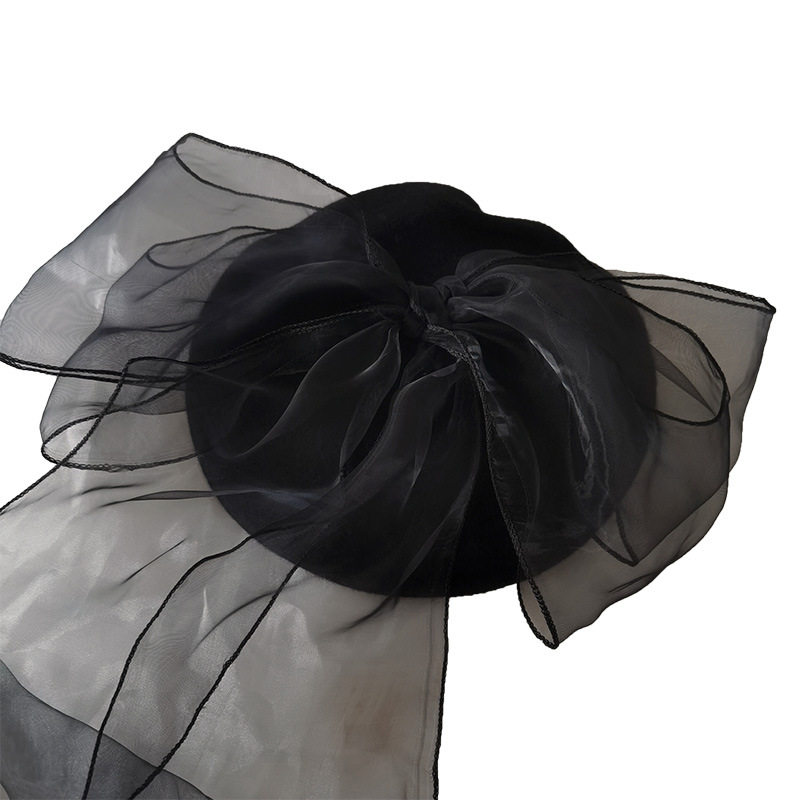 Большой аксессуар для волос с бантиком, черный берет, 2 карат