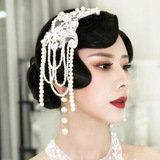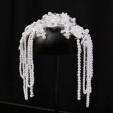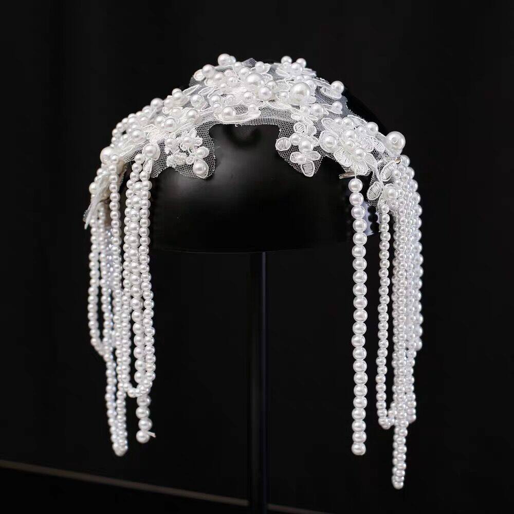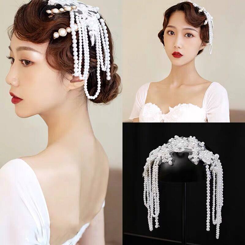 Ретро белая повязка на голову для невесты из жемчуга, корейский аксессуар для волос, цветочный принт
