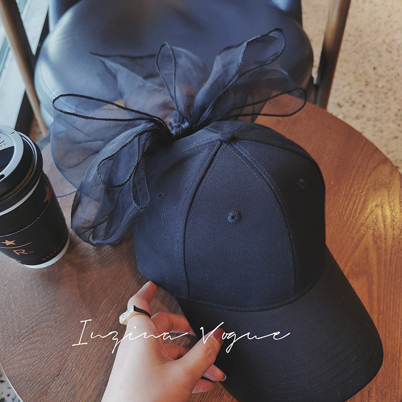 Дизайнерская большая черная бейсболка с бантиком, кепка