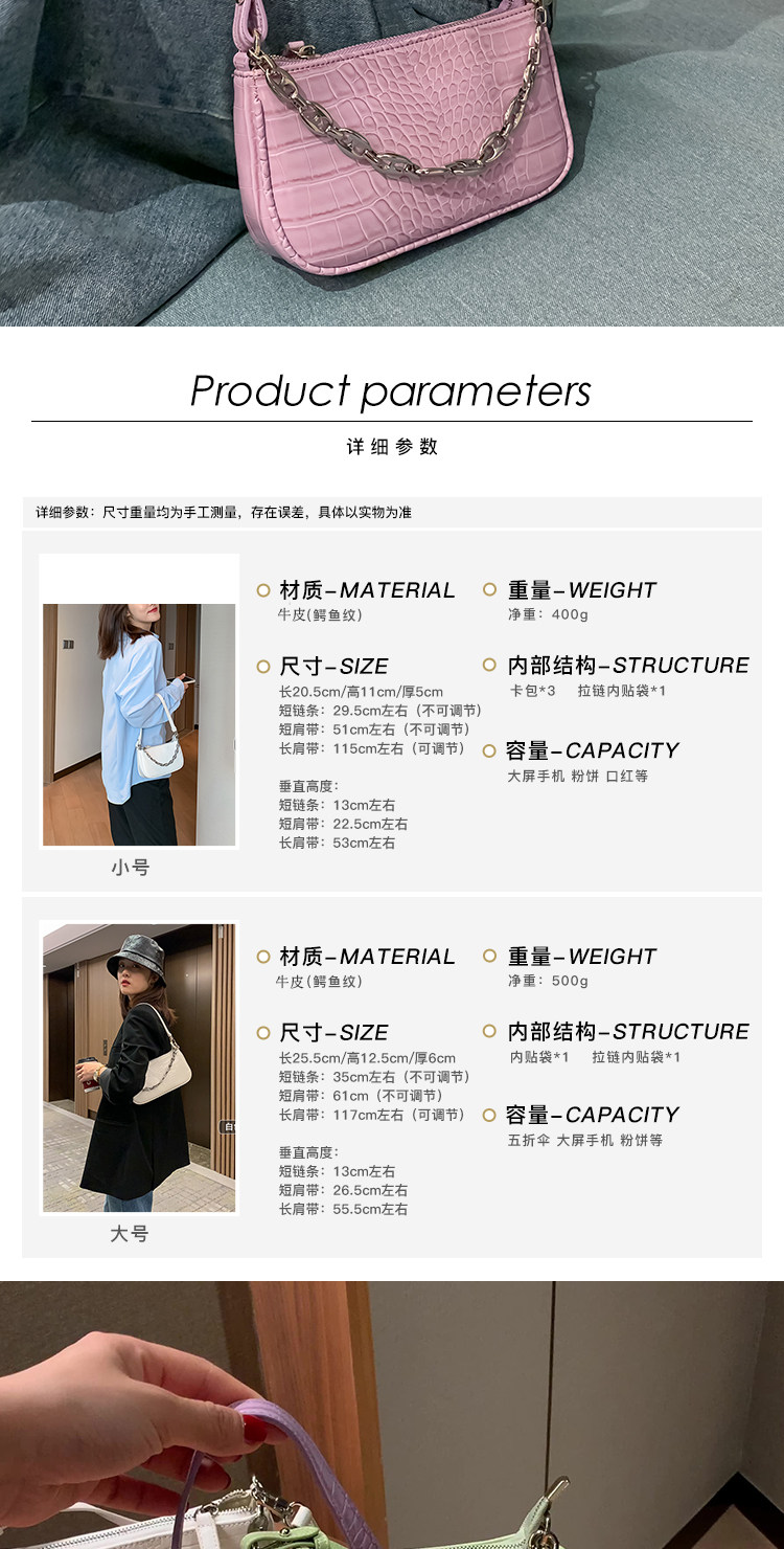 Небольшая дизайнерская сумка подмышку, сумка через плечо, сумка для телефона, сумка на одно плечо, цепь, крокодиловый принт, на цепочке
