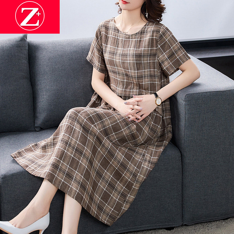 Элитное тонкое платье для матери, свободный крой, из хлопка и льна, 2022, в западном стиле