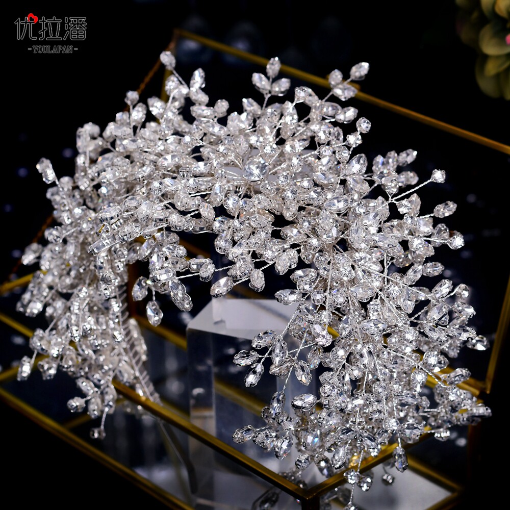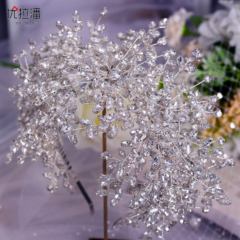 Серебряная блестящая тиара ручной работы, свадебное платье для невесты, аксессуар для волос, ободок, HP385