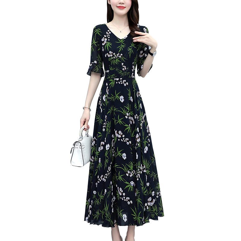 Летняя юбка, шифоновое длинное платье для матери, изысканный стиль, цветочный принт