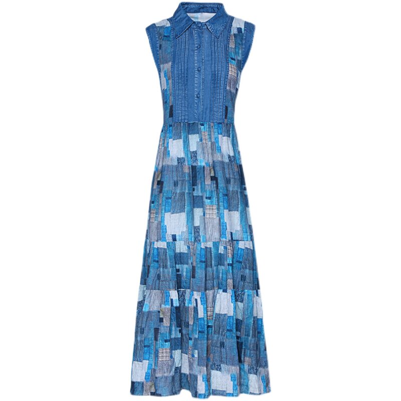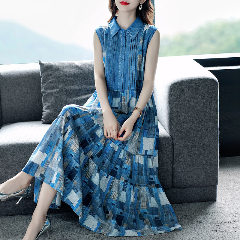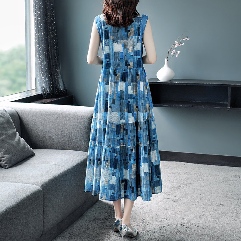 Летнее этническое платье, джинсовая тонкая длинная юбка, этнический стиль, из хлопка и льна