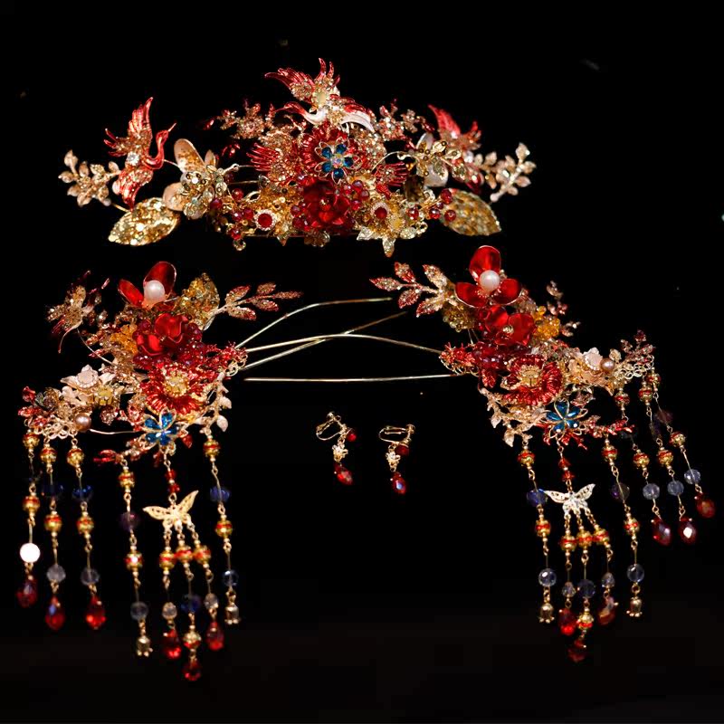 Красная китайская шпилька с кисточками со стразами, классический аксессуар для волос, дракон и феникс