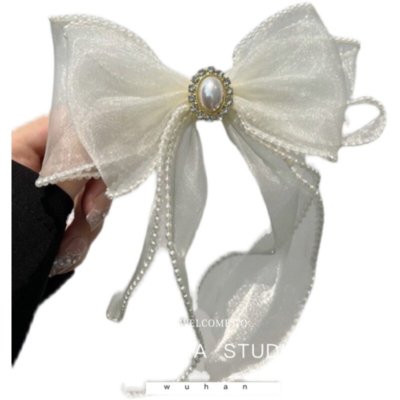 Минималистичный аксессуар для волос из жемчуга для невесты с бантиком, французский стиль, популярно в интернете