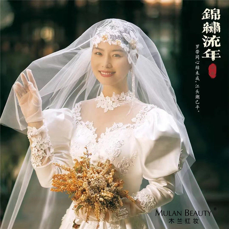 Ретро кружевная длинная фата невесты ручной работы, аксессуар для волос, реквизит для фотографии