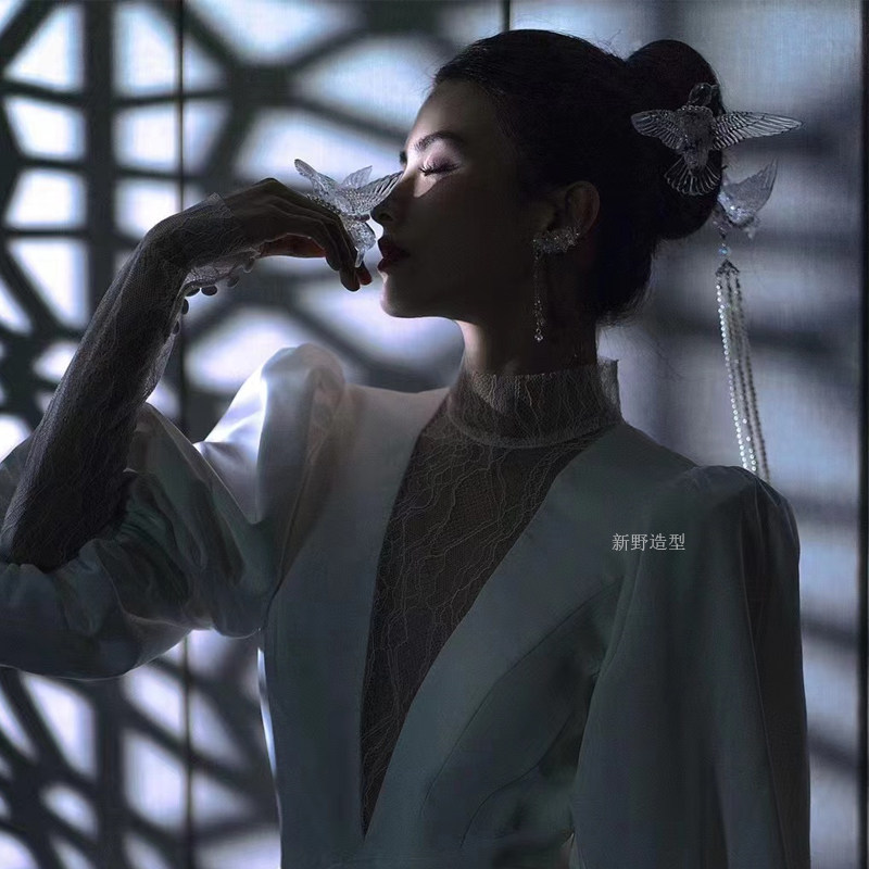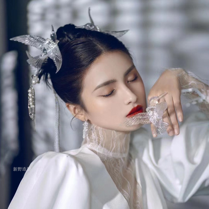 Акация Новый древний стиль, новая китайская стиль парио 揺 Серьги, серьги, подстриженные боковые декоративные образцы невесты и аксессуары женщины