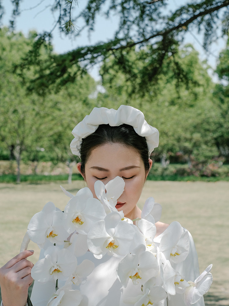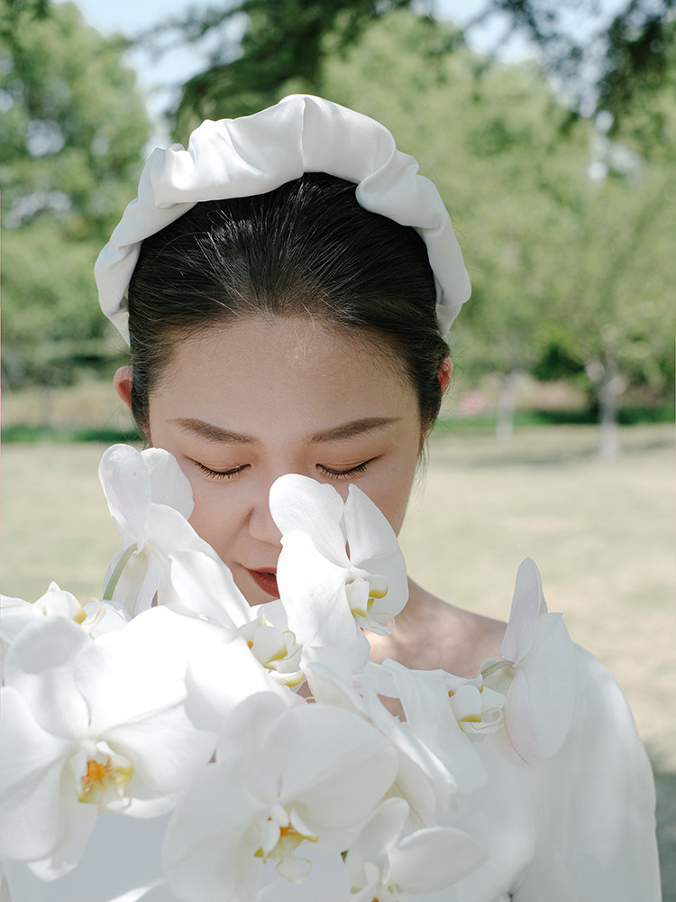 Белый фангл летний солнцестояние атласные ретро -волосы ювелирные украшения марли -невеста свадьбы для получения темперамента темперамента