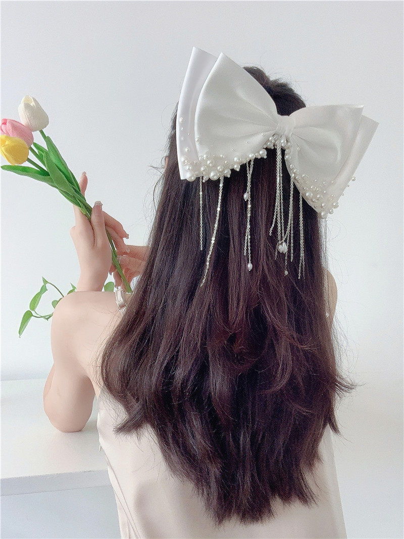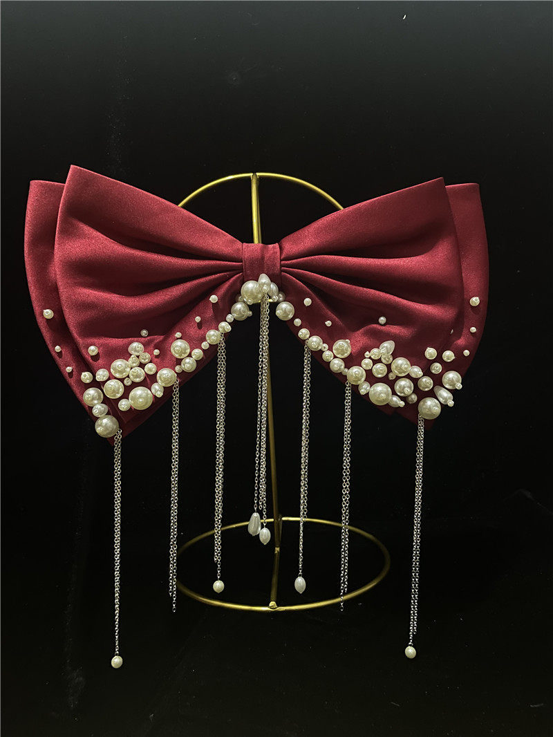 Белый бордовый аксессуар для волос ручной работы из жемчуга с кисточками с бантиком для невесты, удар головки ствола