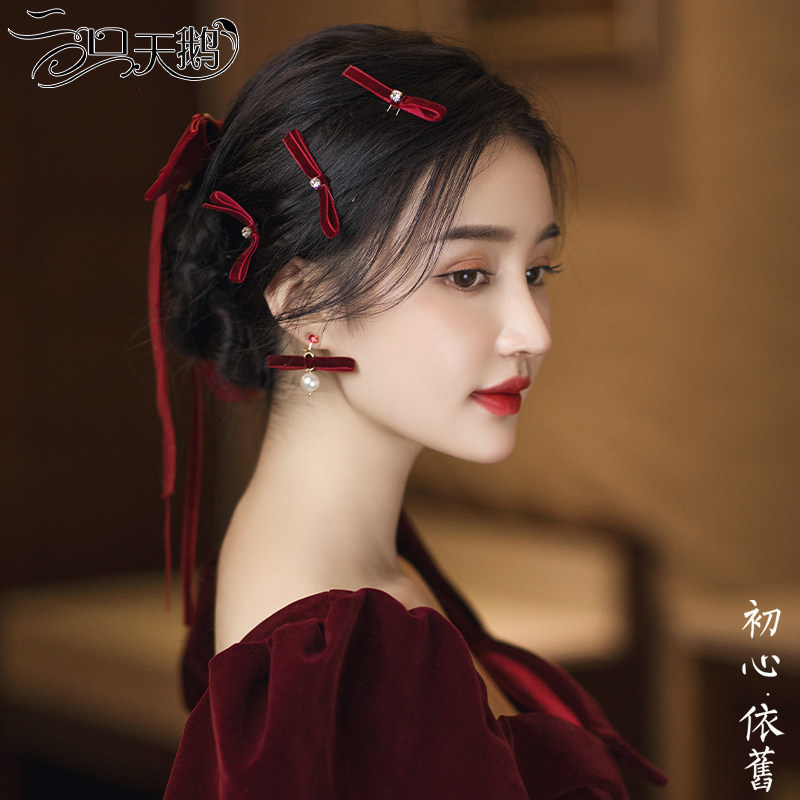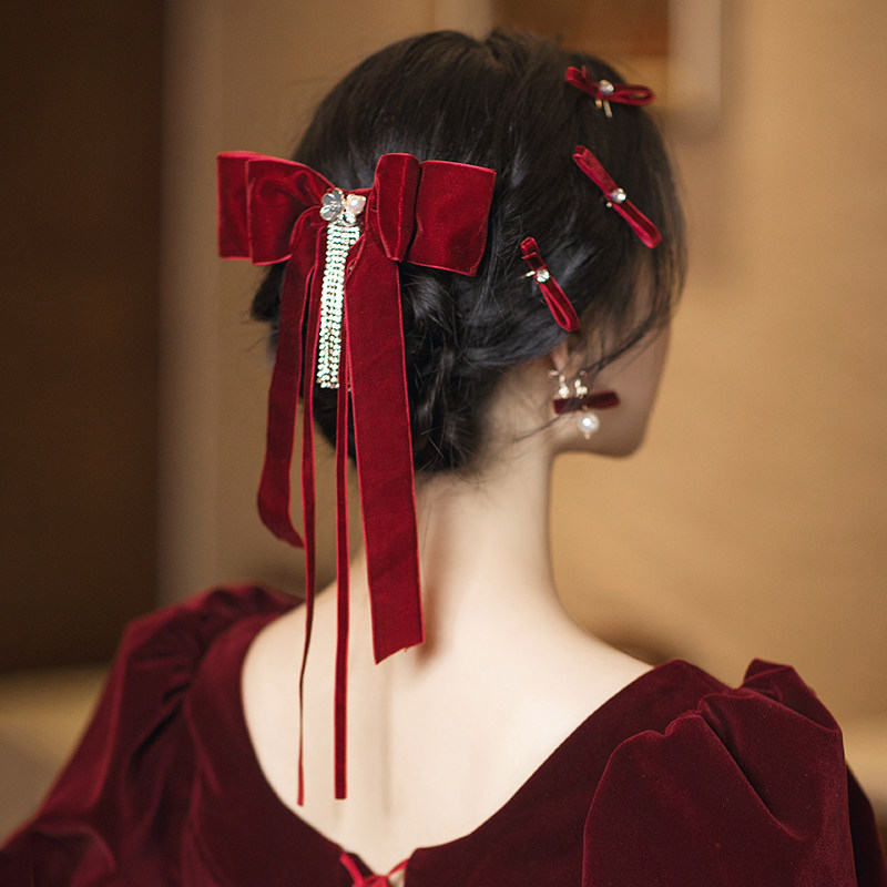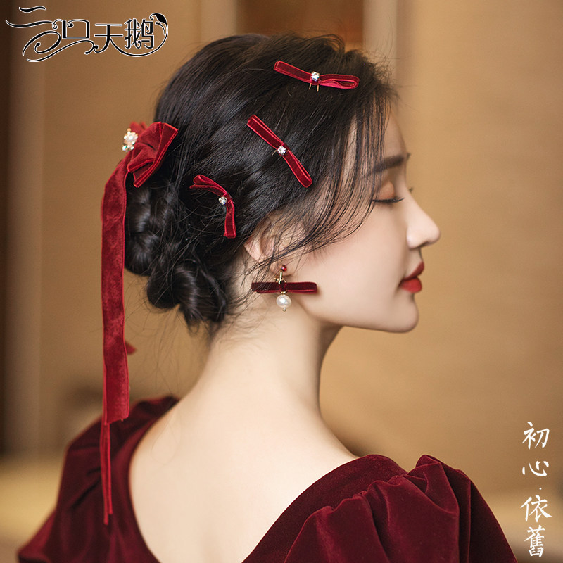 Вечернее платье, аксессуар для волос для невесты, бордовое свадебное платье с бантиком
